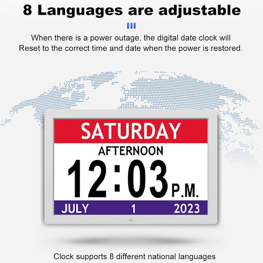 10 Inch Digital Smart Clock, Large Display Alarm Reminder Clock Memory with 12 Alarms Date Time Display for Bedroom Living Room Wall Table