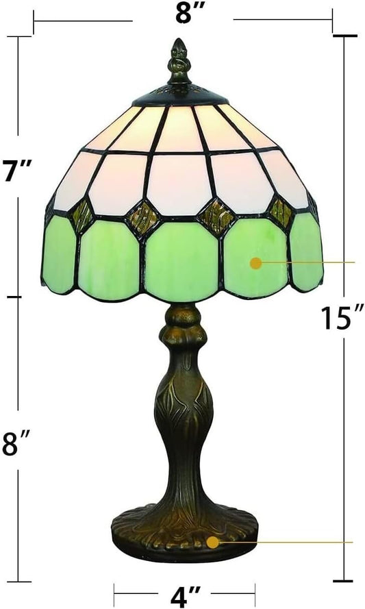 15 Inch Vintage Table Lamp with Stained Glass Lampshade for Reading Living Room Bedroom Office Decoration Suitable for bedrooms, Living Rooms, Offices, Book(Green)