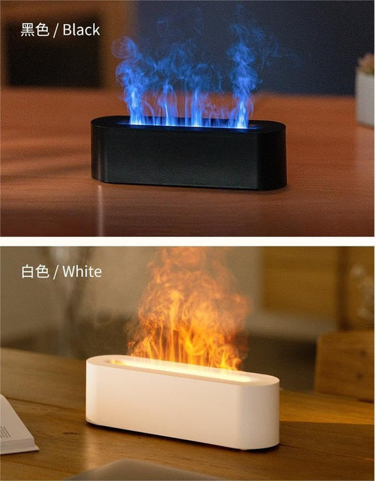 Simulation Colorful Flame Aromatherapy Humidifier - Delicate Atomization, 3-Speed Scheduled Shutdown, Water and Power Outage Protection. Perfect for Home, Office, Yoga Studio and Spa (Color : Blanc)