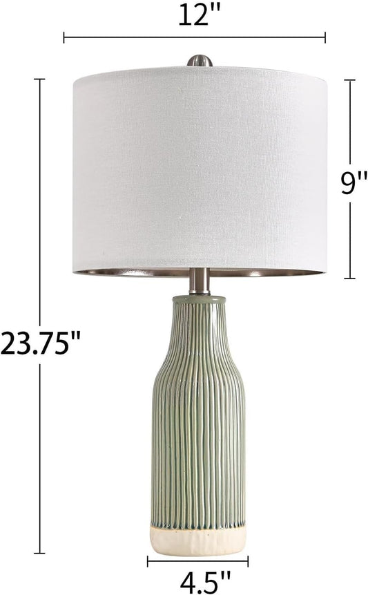 23.75" Modern Ceramic Table Lamp Set of Two with Linen Shades for Bedroom, Office and Living Room Decor Suitable for bedrooms, Living Rooms, Offices, Book(23.75"-Green-2Pack)