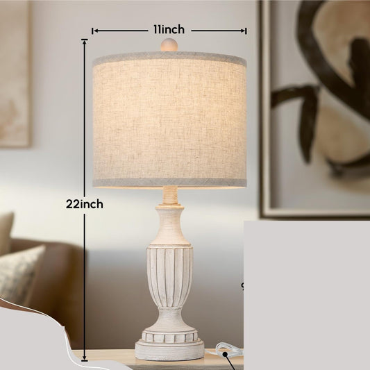 22" Farmhouse Table Lamp 2-Pack, Resin Base with Linen Shade, Suitable for Living Room Or Bedroom Side Table(Black)