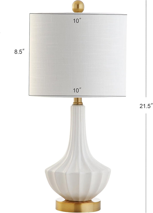 21.5" Modern Ceramic LED Table Lamp with Cotton Shade for Office, Living Room, Dining Room, Bedroom, Brass/White Suitable for bedrooms, Living Rooms, Offices, Book
