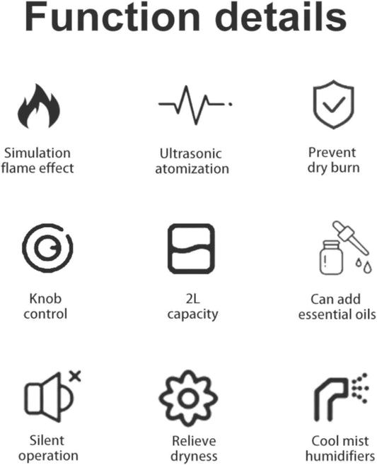 Flame Humidifier Aroma Diffuser,Cool Mist Humidifier,Simulated Flame, Power Outage When There Is No Water,Silent Humidification For Baby Bedroom Plant Office Yoga,Black