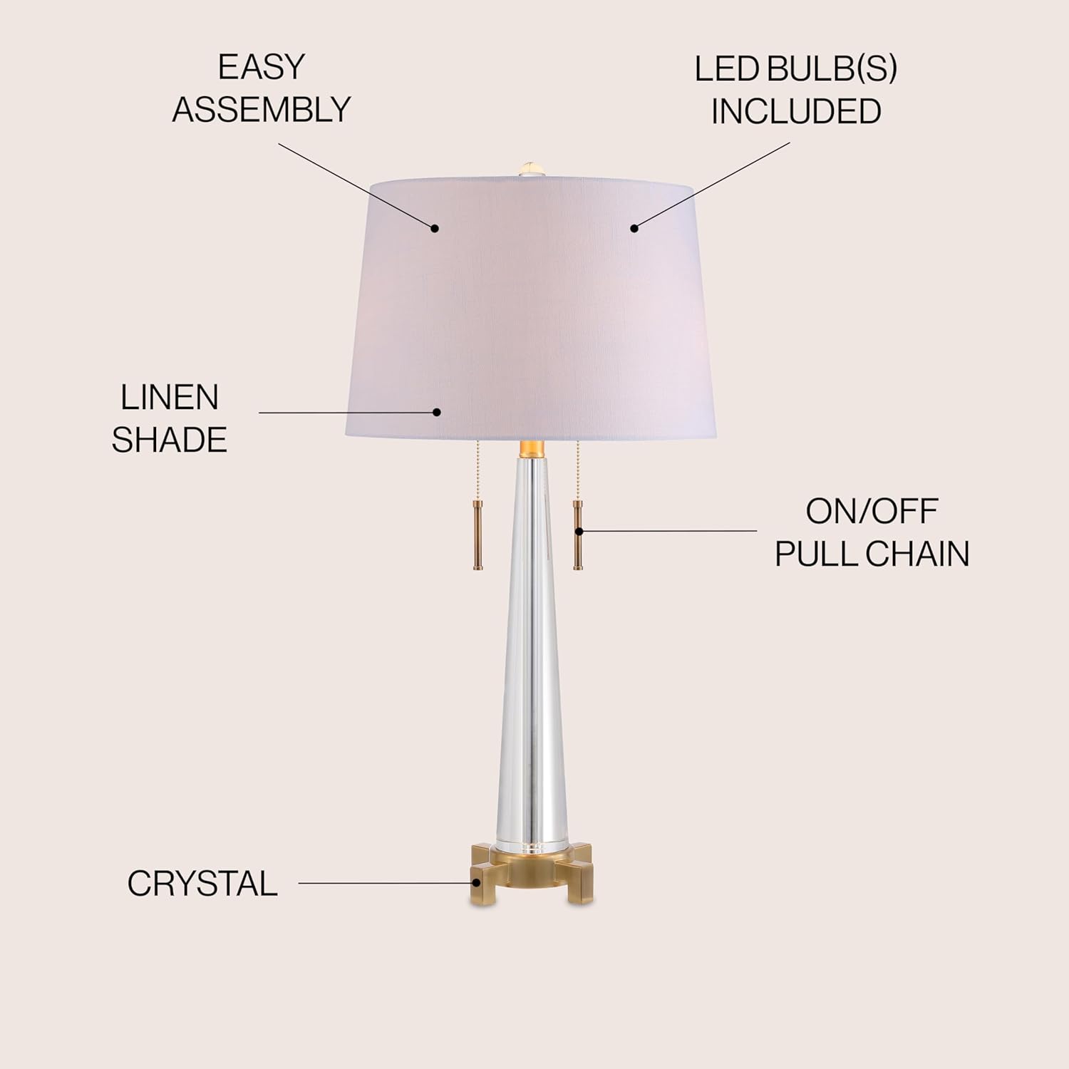 JONATHAN Y JYL2018A Zoe 29.5" 2-Light Crystal LED Table Lamp Contemporary Glam Modern Bedside Desk Nightstand Lamp for Bedroom Living Room Office College Bookcase LED Bulbs Included, Clear/Brass Gold