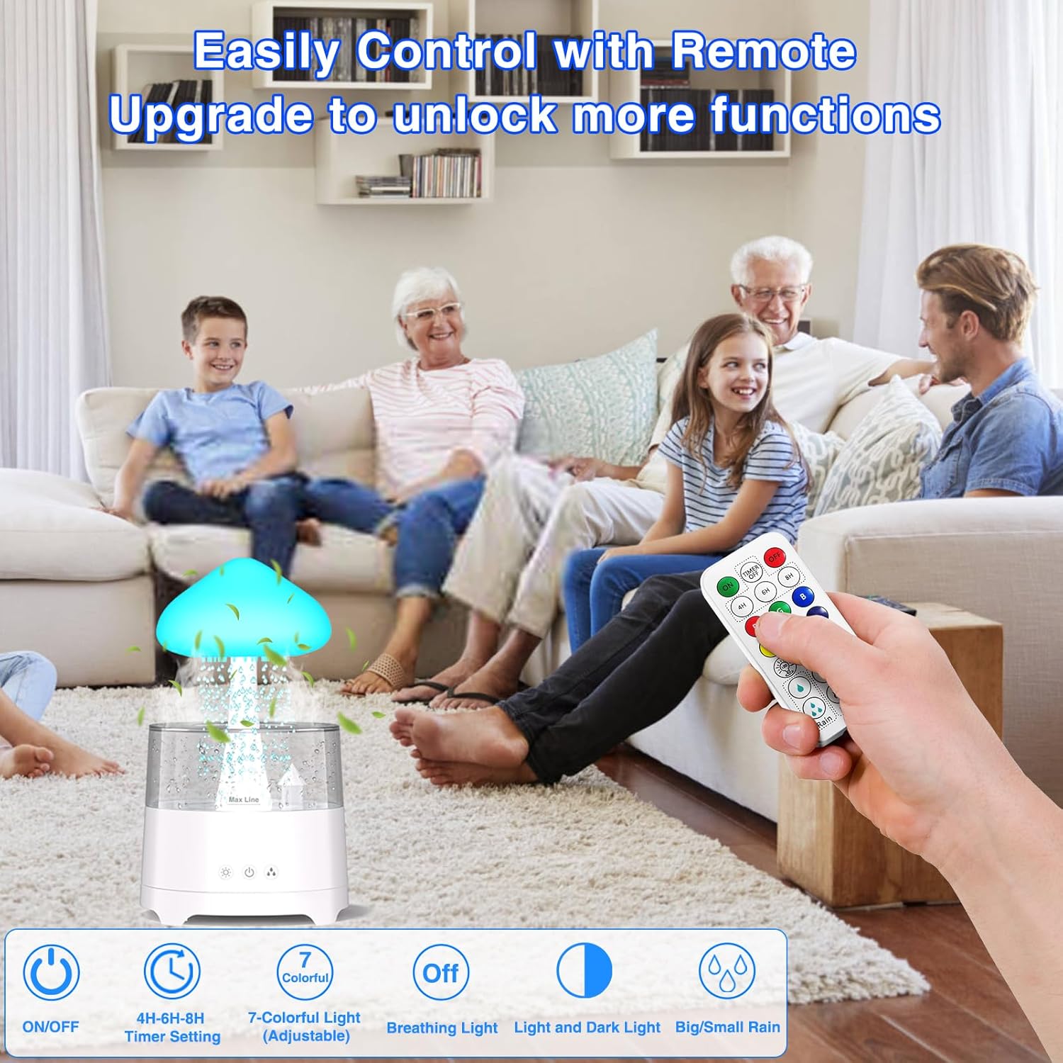 Diffuserlove Cloud Humidifier Rain Water Drip Diffuser Humidifier 450ML with Remote Mushroom Lamp Humidifier Rain Sounds Humidifier Air Humidifiers for Bedroom Desk