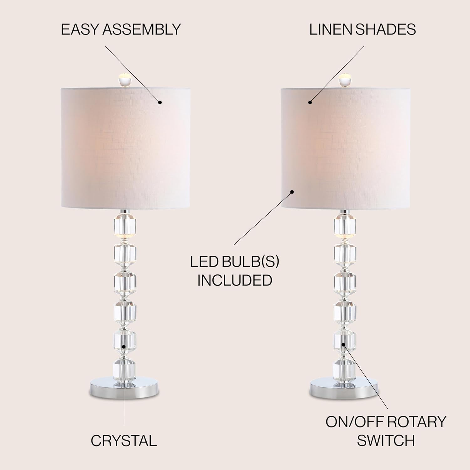 JONATHAN Y JYL5053A-SET2 Set of 2 Table Lamps Cary 27.5" Modern Stacked Crystal/Metal LED Table Lamp Glam,Modern for Bedroom, Living Room, Office, College Dorm, Coffee Table, Chrome/Clear