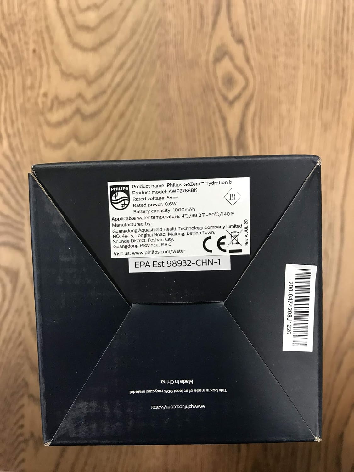 PHILIPS Water GoZero UV Self-Cleaning Smart Water Bottle Vacuum Stainless Steel Insulated Water Bottle with Handle Double-wall, Auto Cleaning, Keep Drink Hot or Cold, BPA Free, Black, 20oz