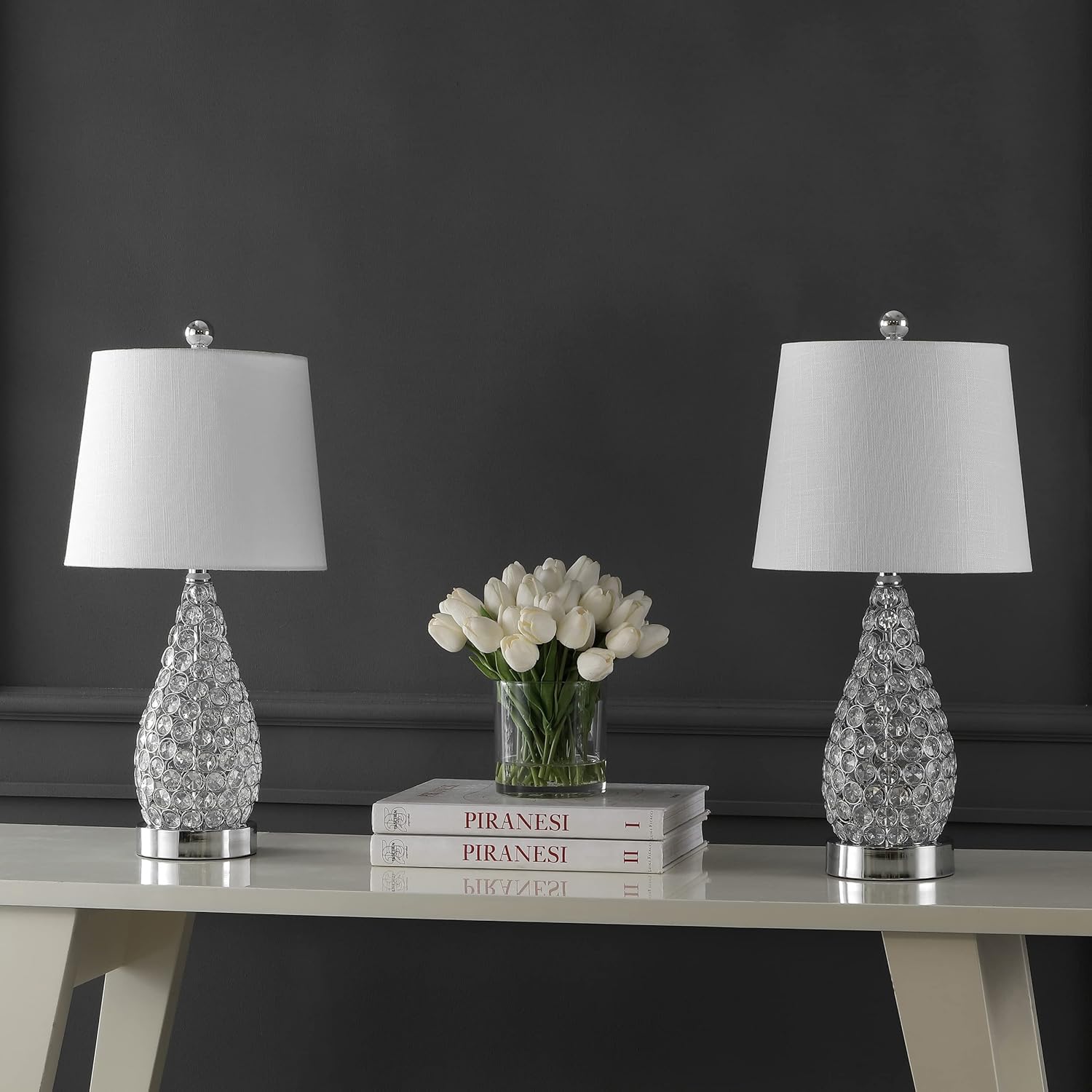 JONATHAN Y JYL1110A-SET2 Lily 22.25" Midcentury Modern Iron LED Table Lamp with USB Charging Port Contemporary Bedside Desk Nightstand Lamp for Bedroom Living Room, Clear (Set of 2)