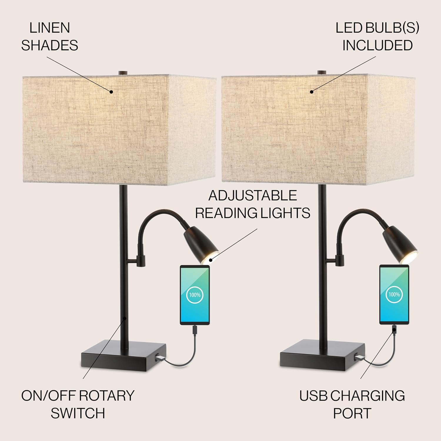 JONATHAN Y JYL1112A-SET2 Austin 25.5" 2-Light Farmhouse Industrial Iron LED Table Lamp,USB Charging Port,Adjustable Reading Light Coastal,Minimalist Bedside Desk Nightstand,Oil Rubbed Bronze(Set of 2)