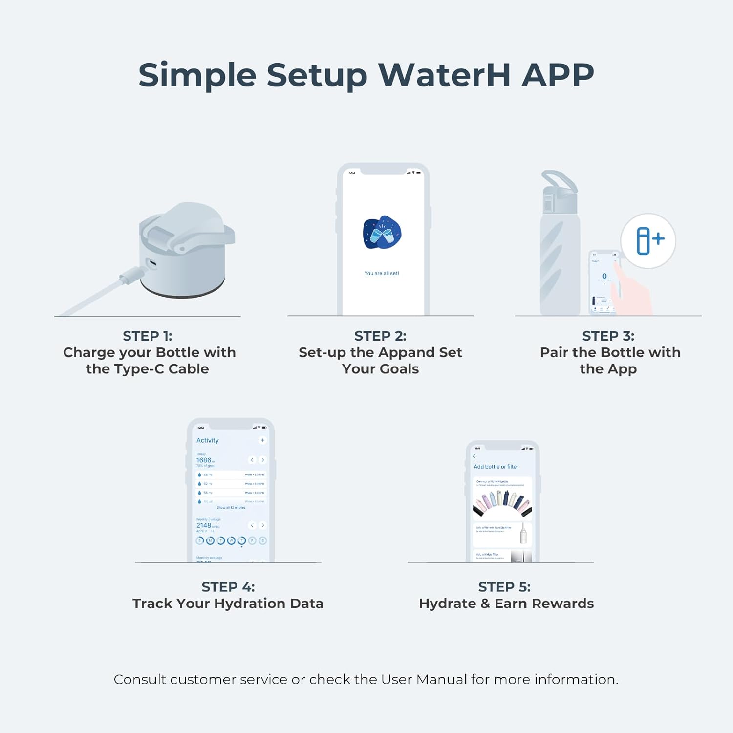 BOOST LITE Smart Water Bottle with Reminder to Drink Water, Motivate & Tracking Hydration Water Bottle with App, 32 oz Tritan BPA-Free Plastic Water Bottles for Gym, School, Office - Blue