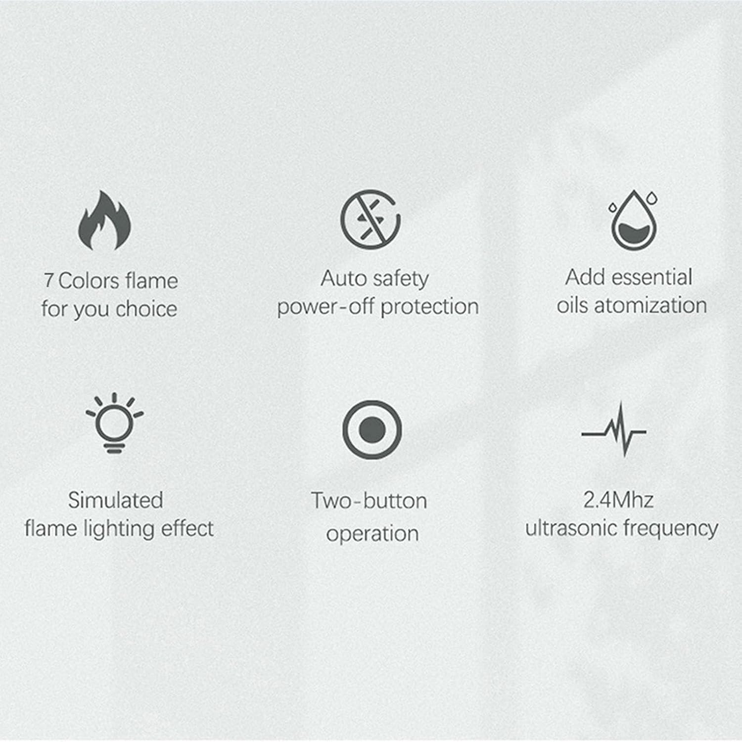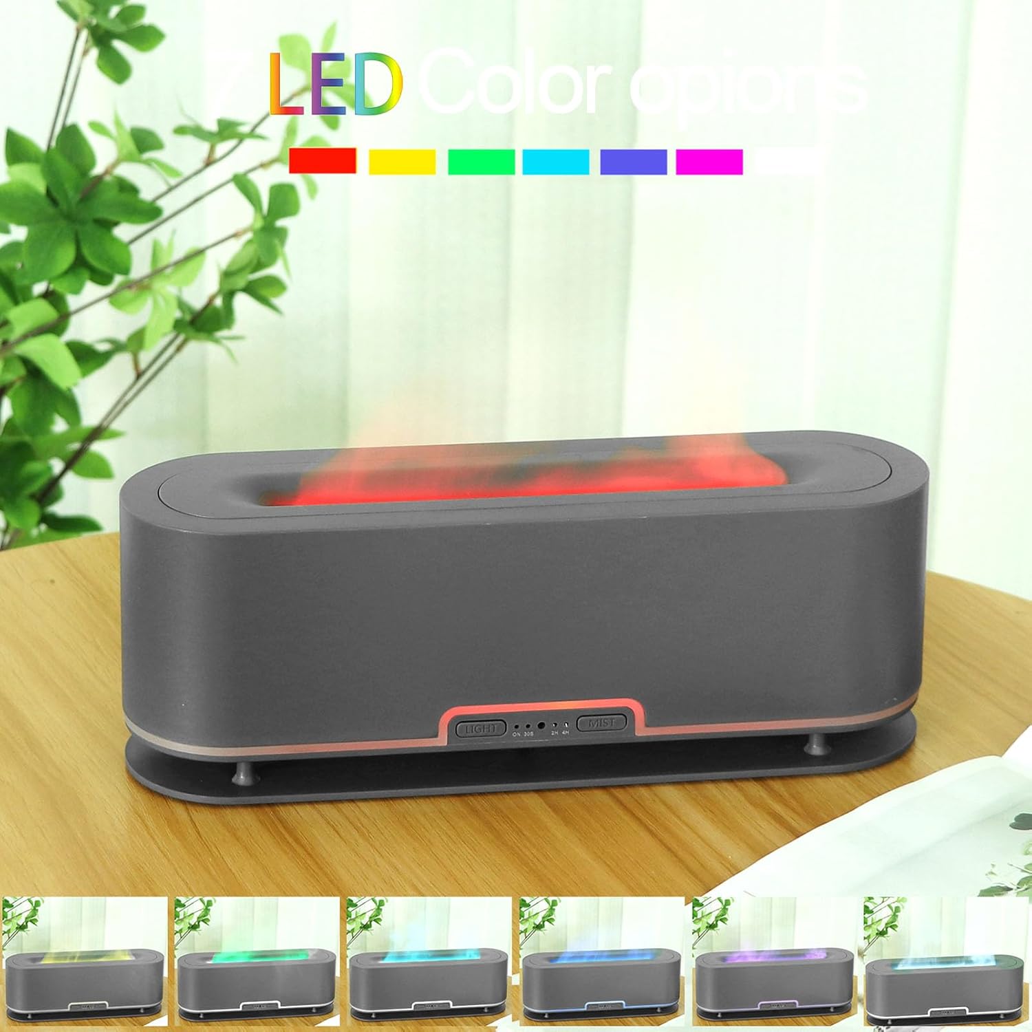 200ml Flame Humidifier with Simulated Flame, Colorful Light, Quiet Operation for Home Office (US Plug)(Gray Black)