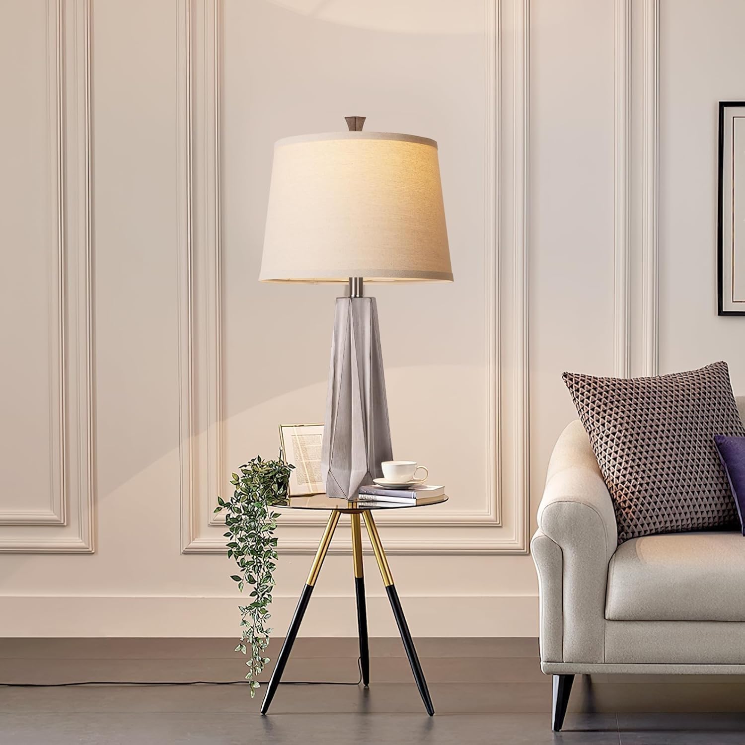 3 Color Temperature Table Lamp, Linen Shade, Living Room Nightstand Bedroom Decor, Bulb Included, Light Wood Grain 2-Pack Suitable for Living Room, Dormitory, Office,