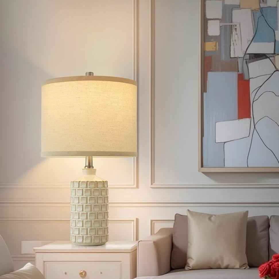 21" Vintage Table Lamp 2-Pack, Mesh Lamp with Fabric Shade, 3 Color Temperatures, for Living Room and Bedroom Suitable for bedrooms, Living Rooms, Offices, Book