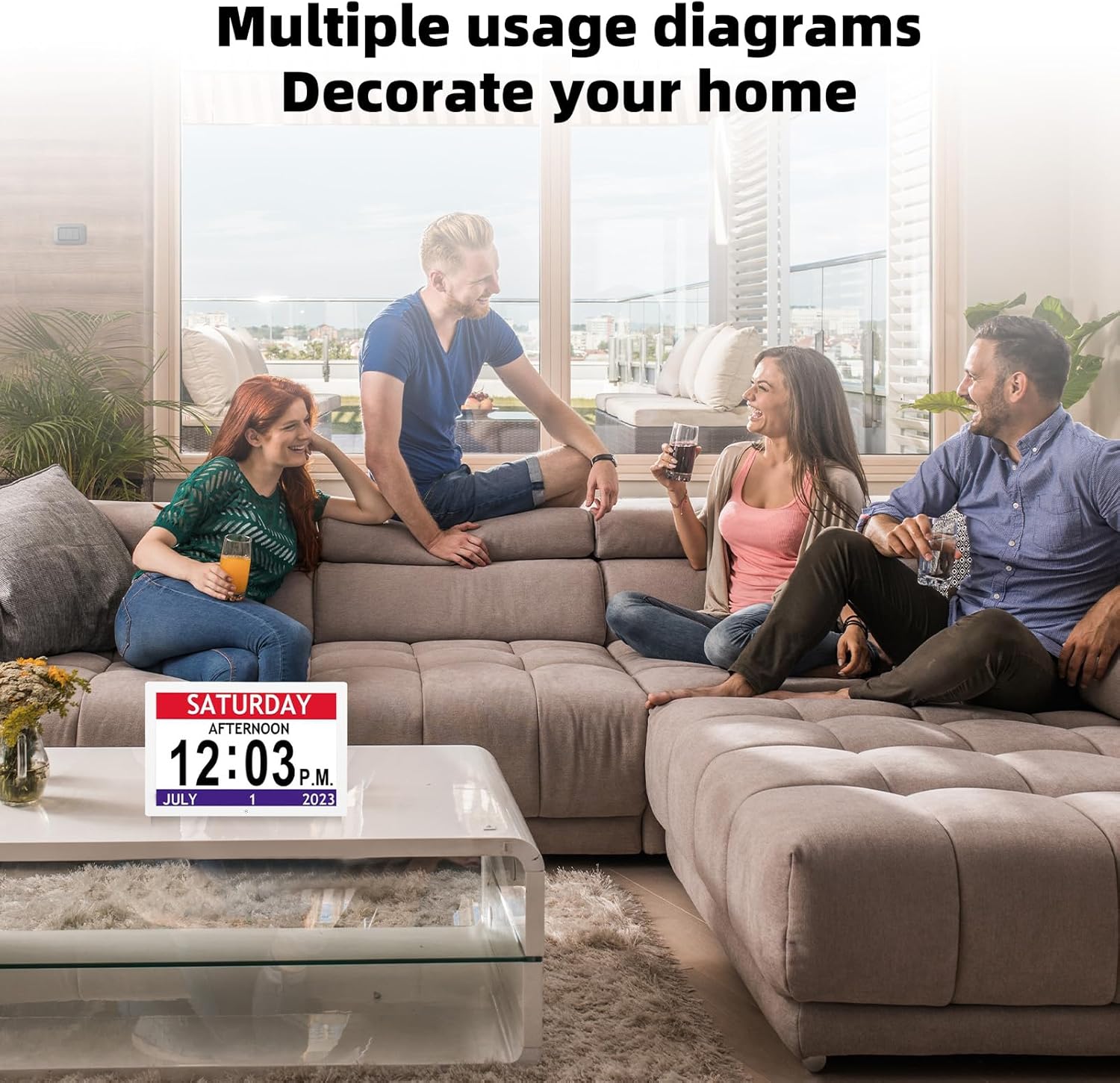 Tangxi 10 Inch Digital Smart Clock with Large Colorful Display, 12 Alarms Reminders Analog and Digital Time Date, for Bedside Table Wall Living Room