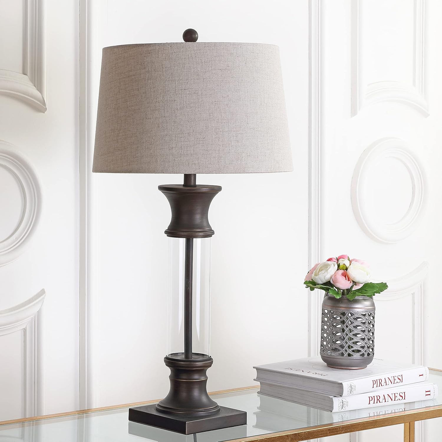 JONATHAN Y JYL4000A-SET2 Set of 2 Table Lamps Hunter 32" Metal/Glass LED Table Lamp Cottage Rustic Bedside Desk Nightstand Lamp for Bedroom Living Room Office College Bookcase, Bronze/Clear