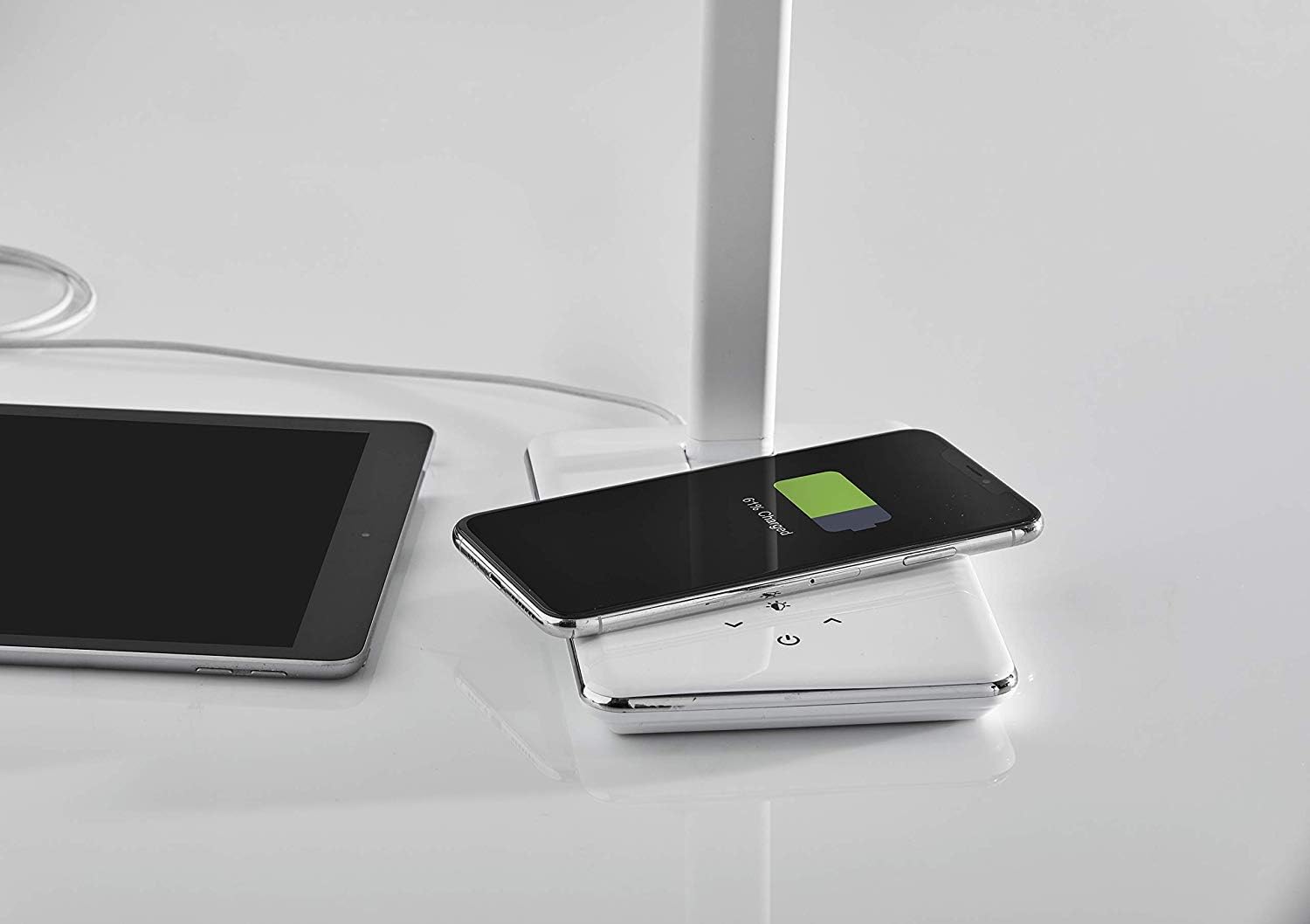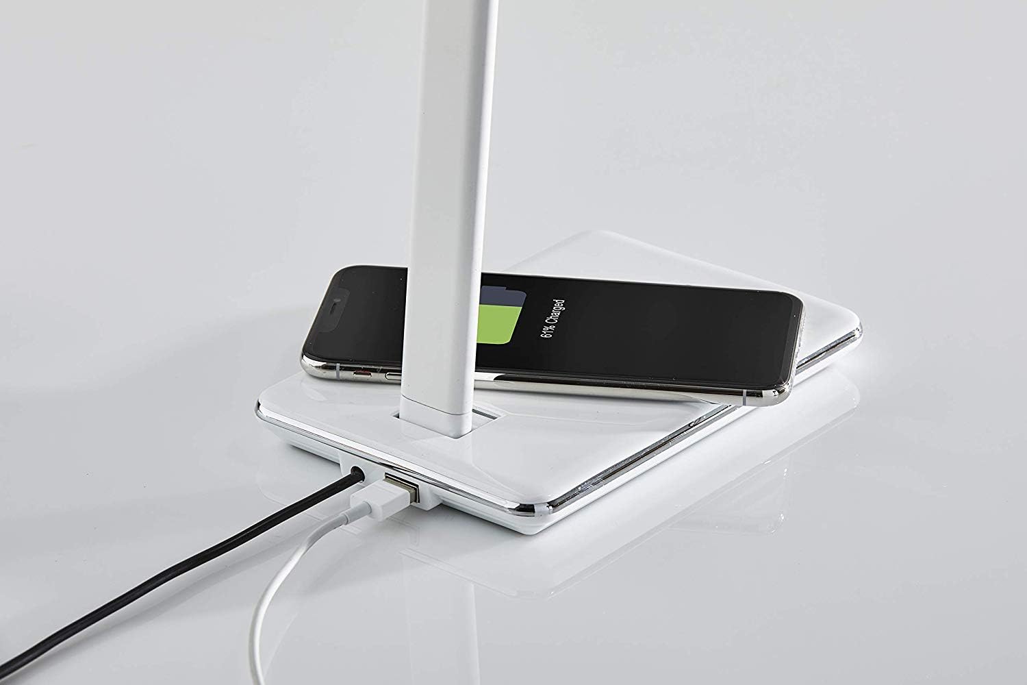 Adesso Simplee Declan LED Multi-Function Desk Lamp, Smart, 3 Color Temperature Modes, Improved Wellness and Circadian Rhythm, Qi Wireless Charging, Dimmer Touch Switch, 5ft, White