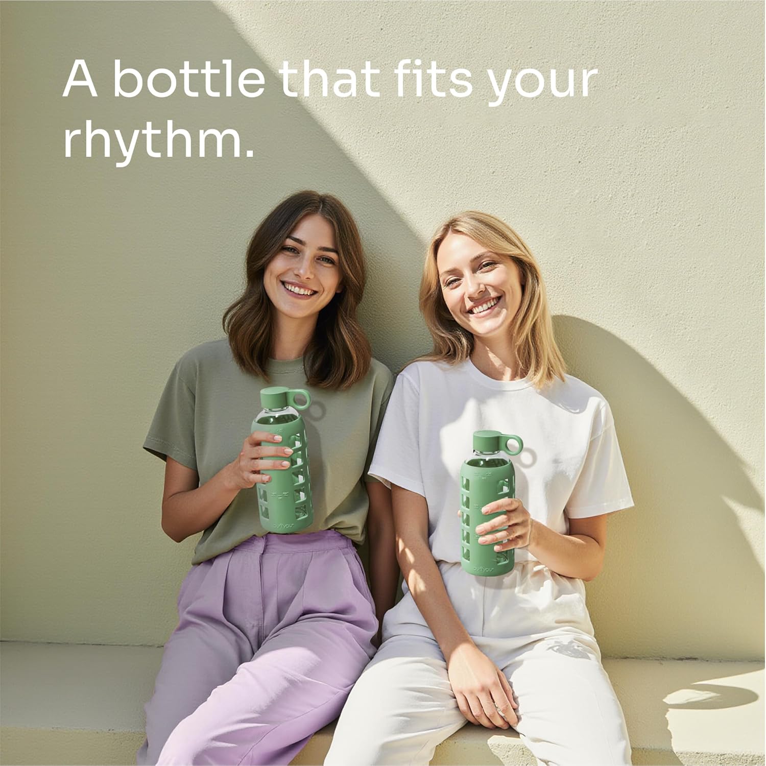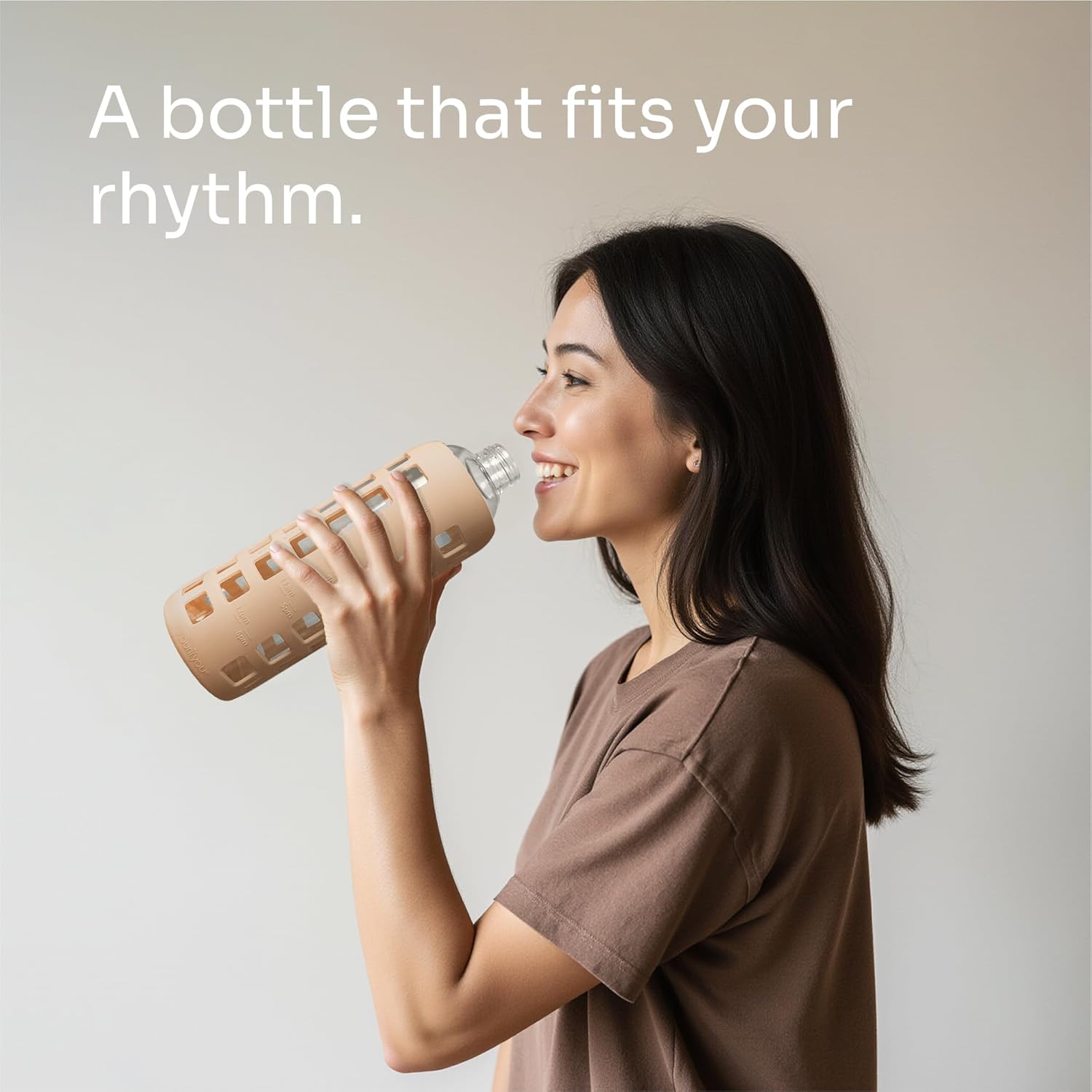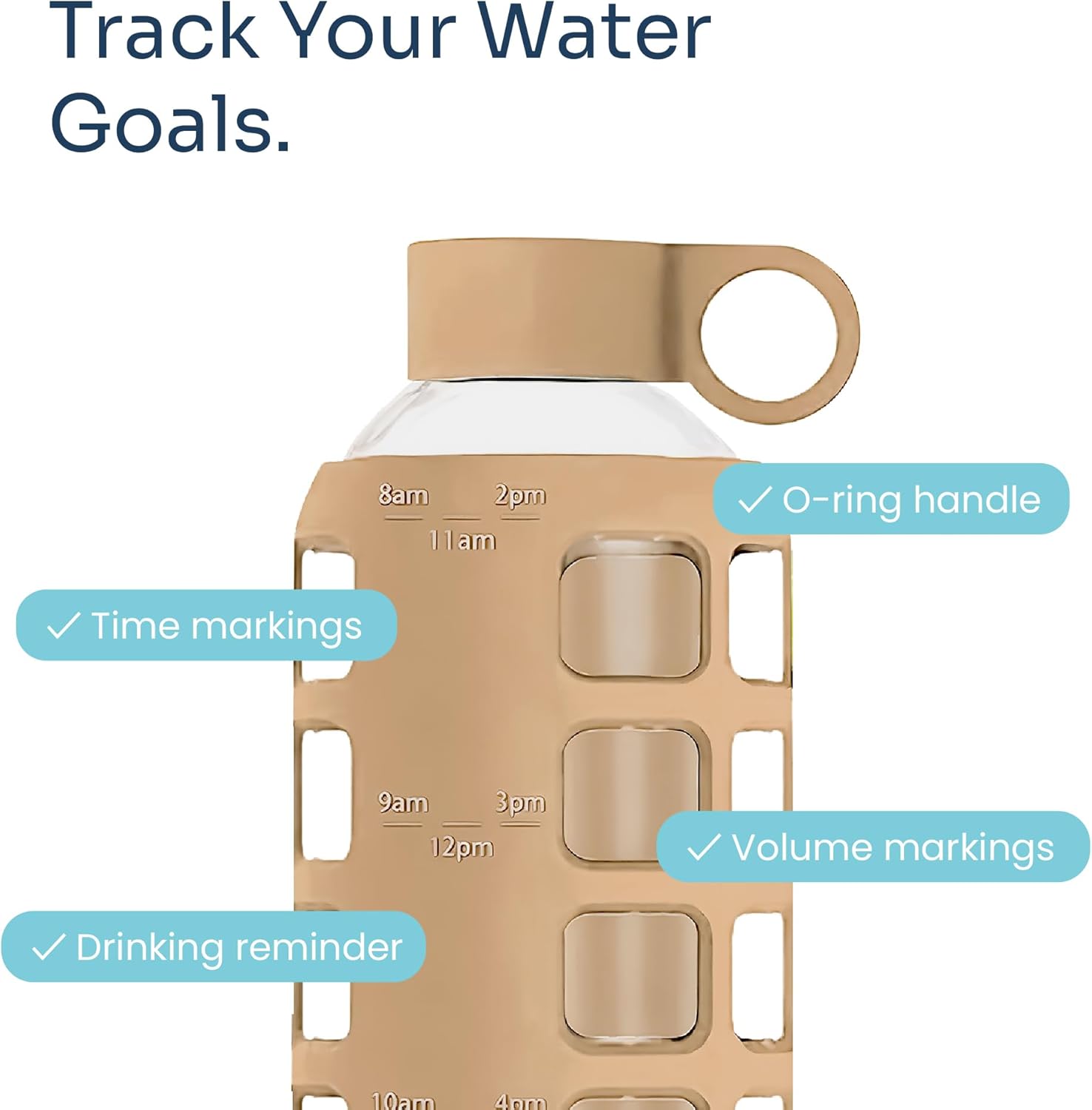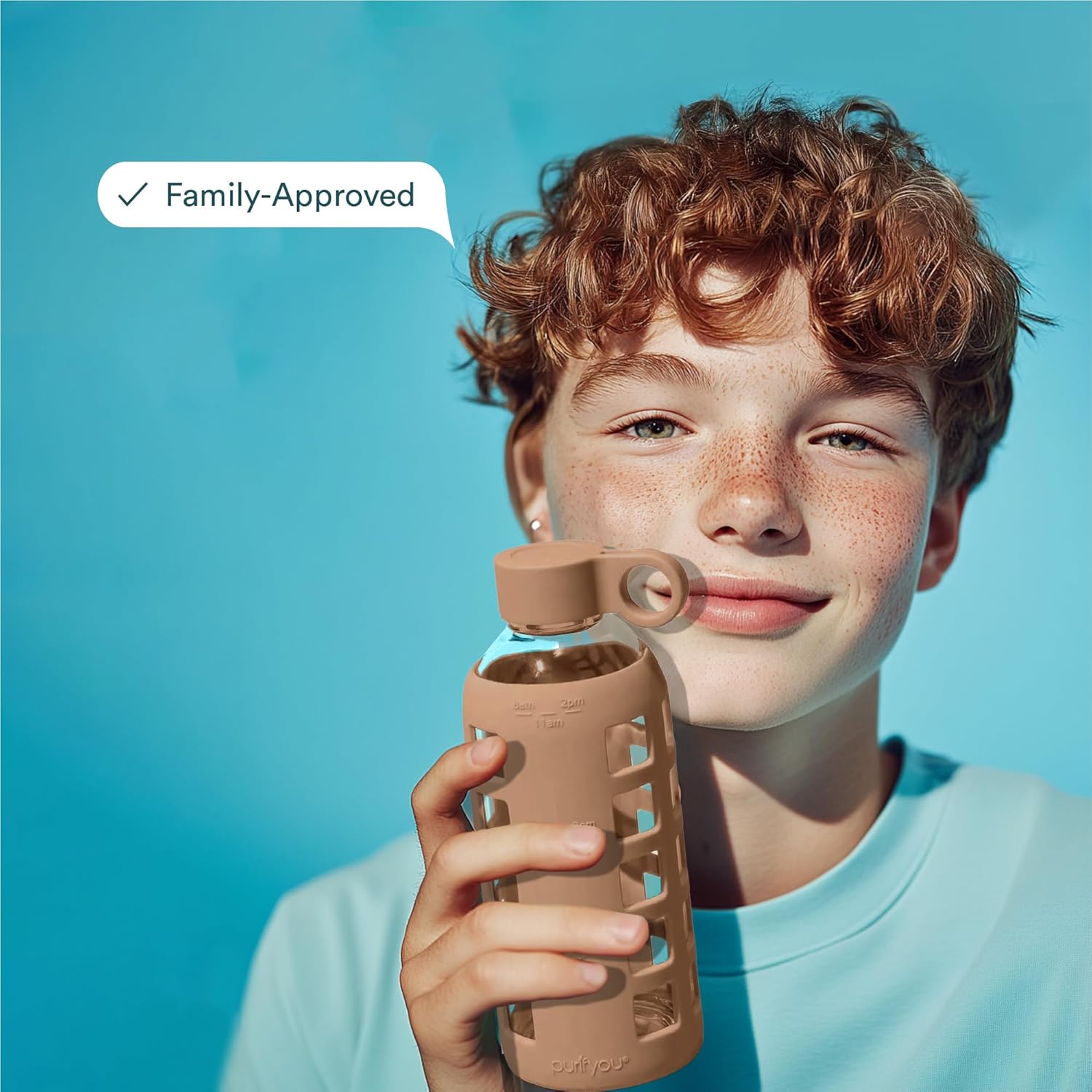 purifyou 40oz / 32oz / 22oz / 12oz Borosilicate Glass Water Bottle with Time & Volume Markers, Silicone Sleeve, Stainless Steel Lid | Reusable Glass Bottle for Water & Juice (40oz Jet Black)
