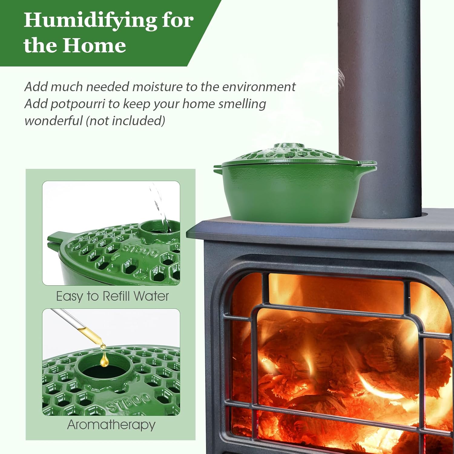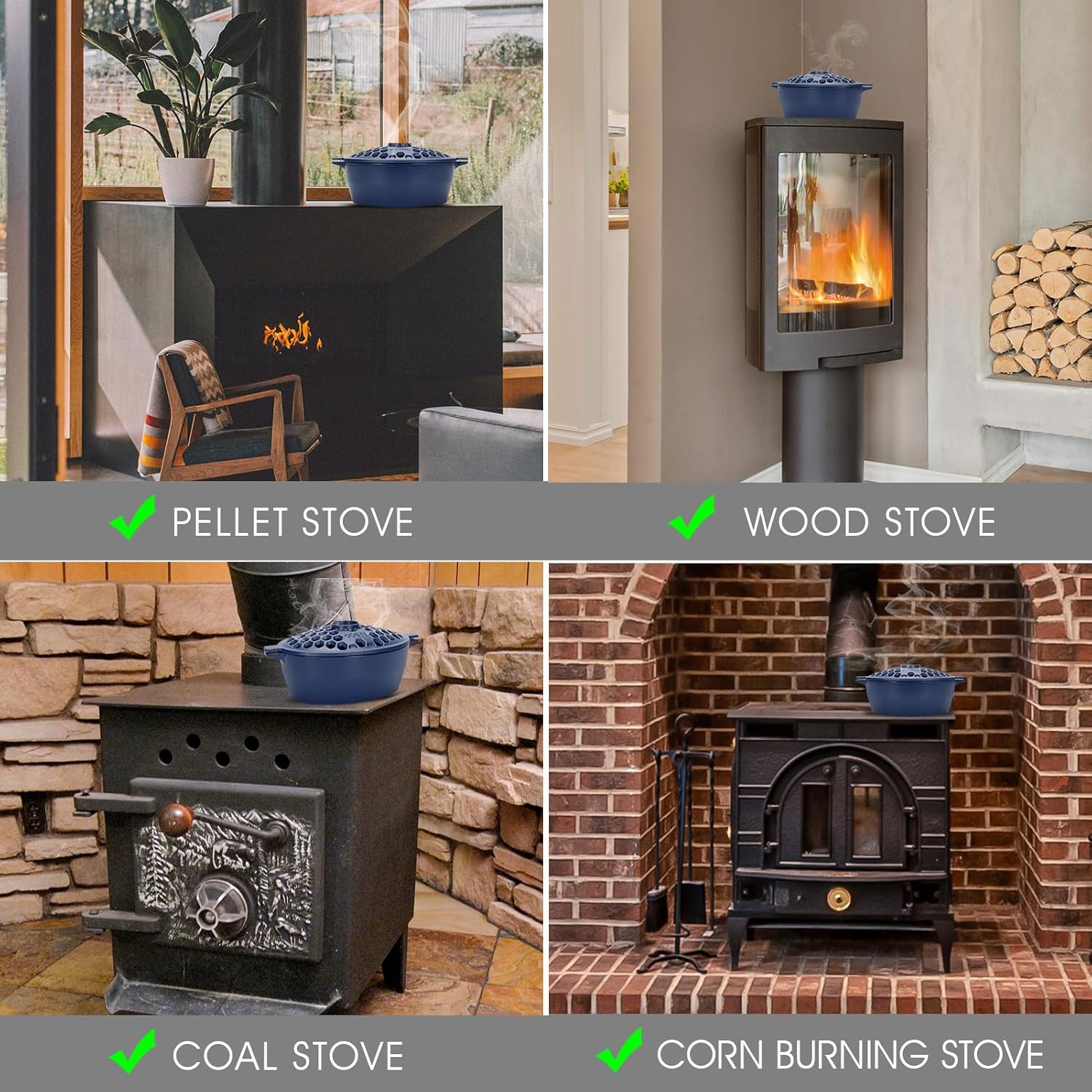 Wood Stove Steamer, Cast Iron Fireplace Humidifier, Indoor Humidifier for Home Heating, Black Bowl Fireplace Stove Covers Accessories Decorative, Matte Black Finish, Rust Resistant, 2.7 Quart Capacity