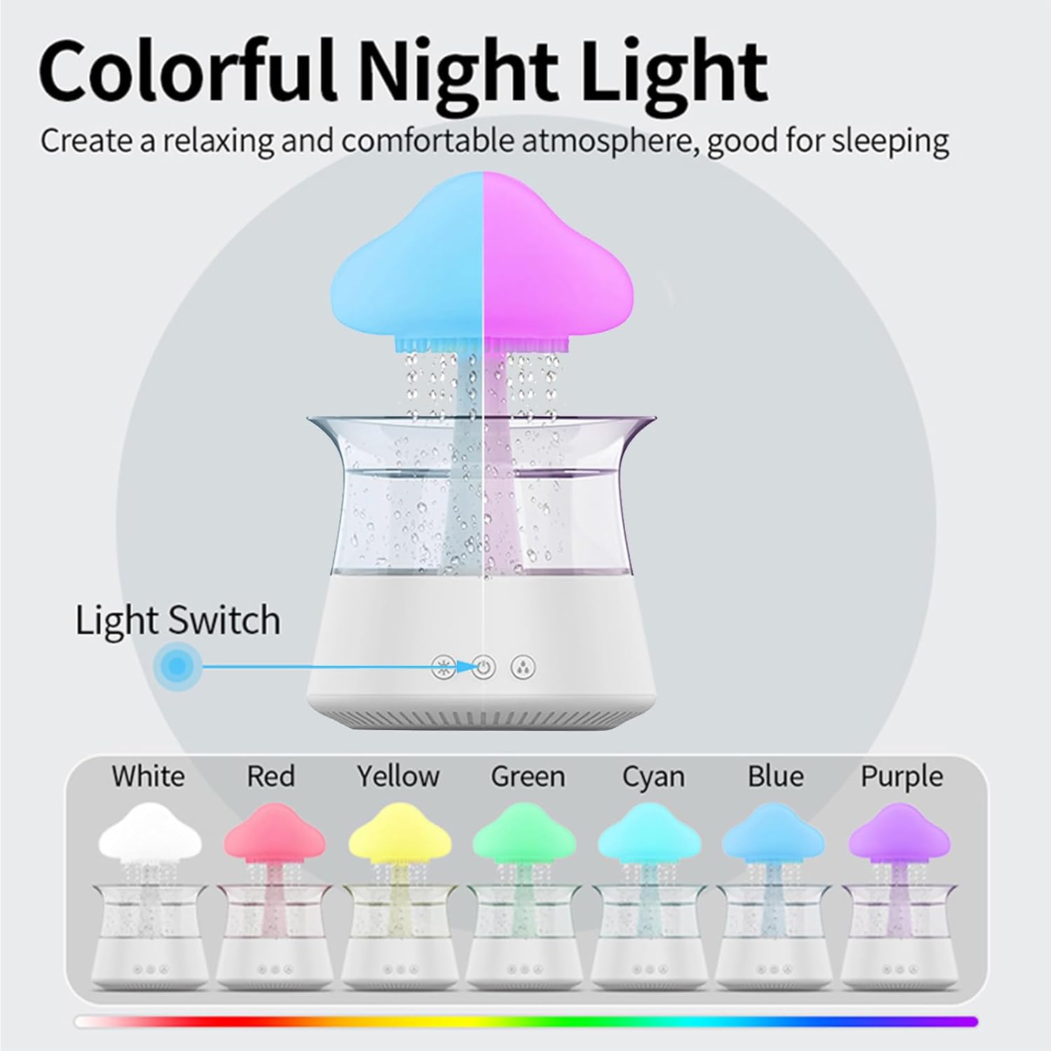 Cloud Rain Humidifier, Colorful Light Raindrop Aroma Diffuser Humidifiers with 7 Color Changing Lights Desktop Fountain Water Drop Sound for Home Office (Wood + Remote Control)