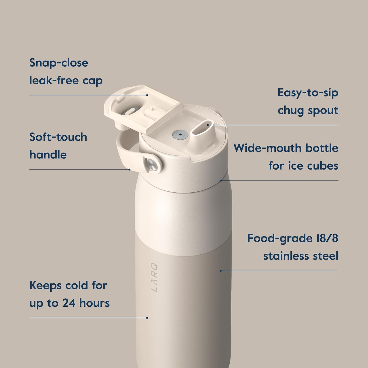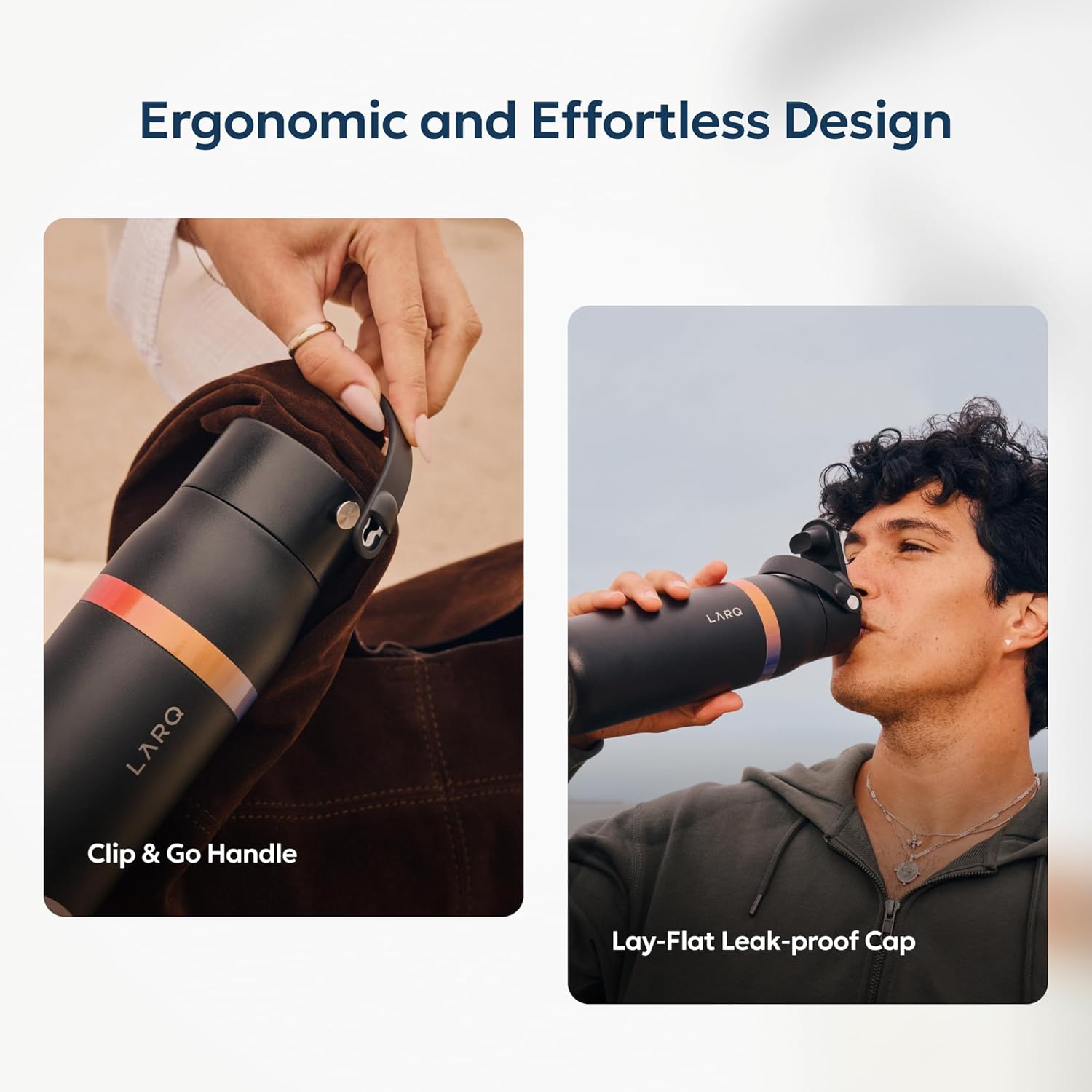 LARQ Bottle Swig Top 34oz - Insulated Stainless Steel Water Bottle With Built-In Silicone Handle | BPA Free | Reusable Water Bottle for Sports, Gym, and Travel, Obsidian Black