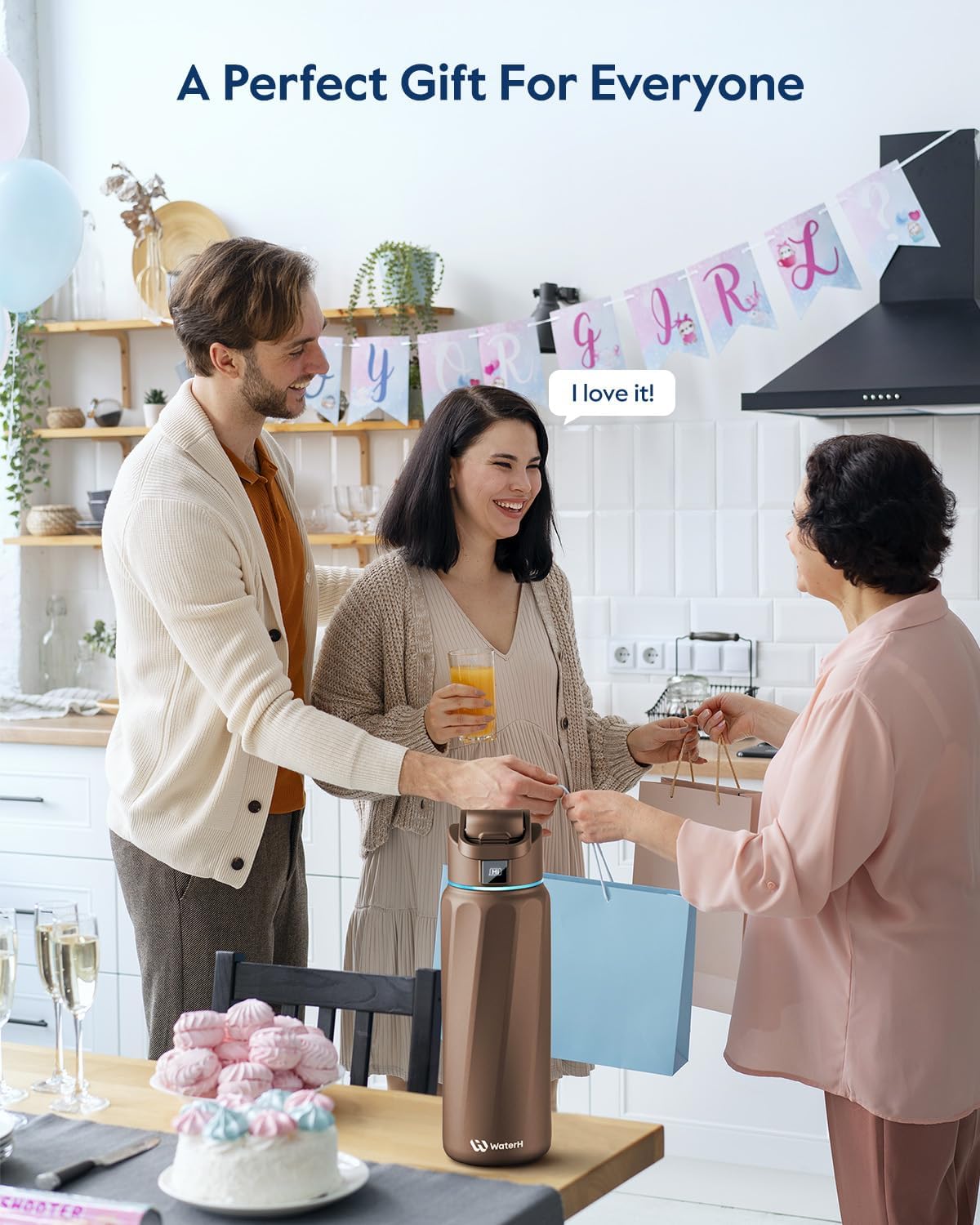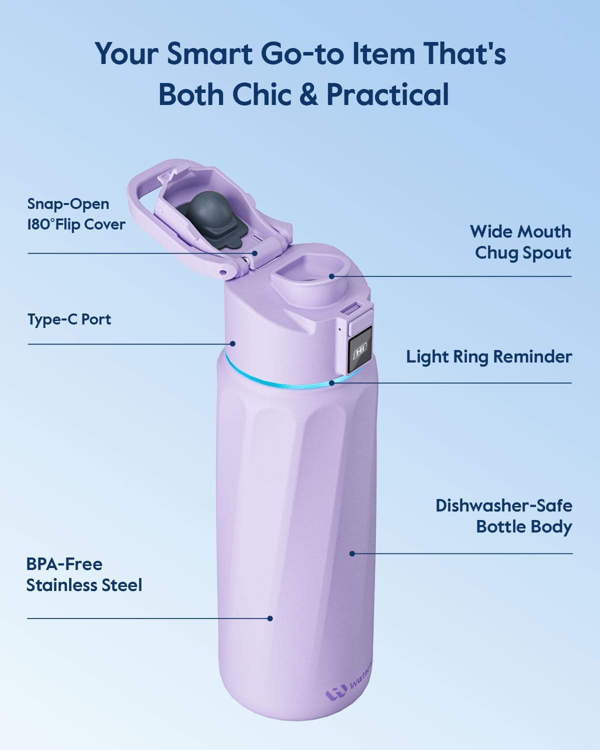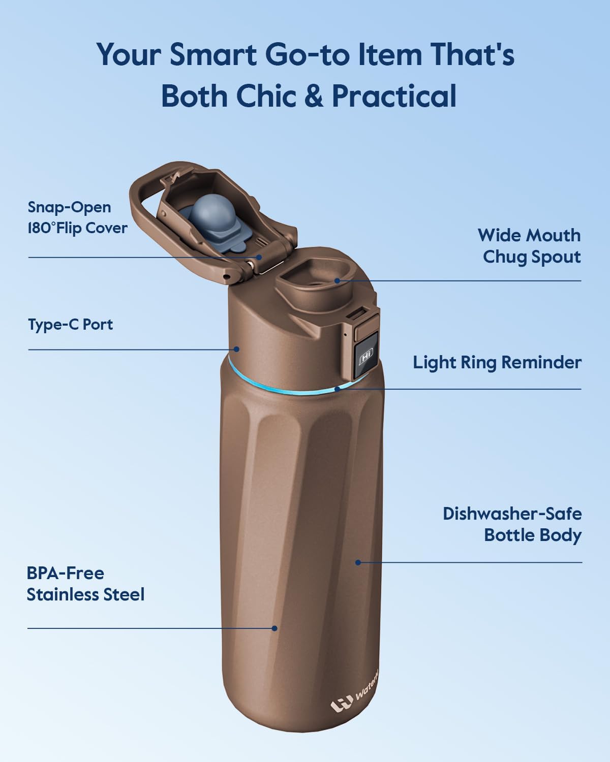 BOOST Smart Water Bottle with Reminder & Tracker, Double Wall Vacuum Insulated Bottles Stainless Steel, 32oz BPA-Free Wide Mouth for Gym, Office, School - Ideal Gift, Black