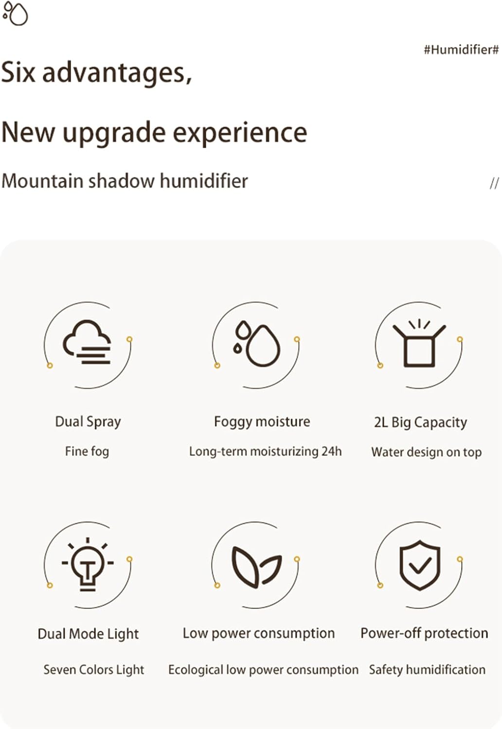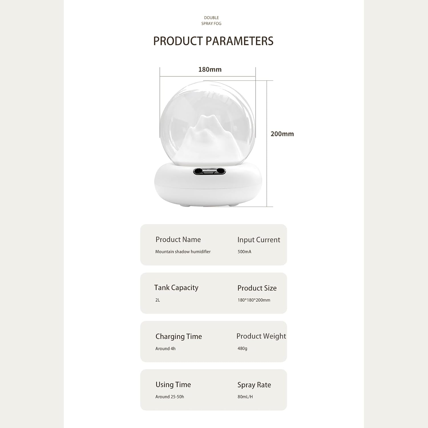 Innovative Cold Air Humidifier Mountain Peak Air Humidifiers USB 2L Essential Oil Diffuser Aromatherapy Humidifiers Dual Mode Light for Home,USB Plug In Type