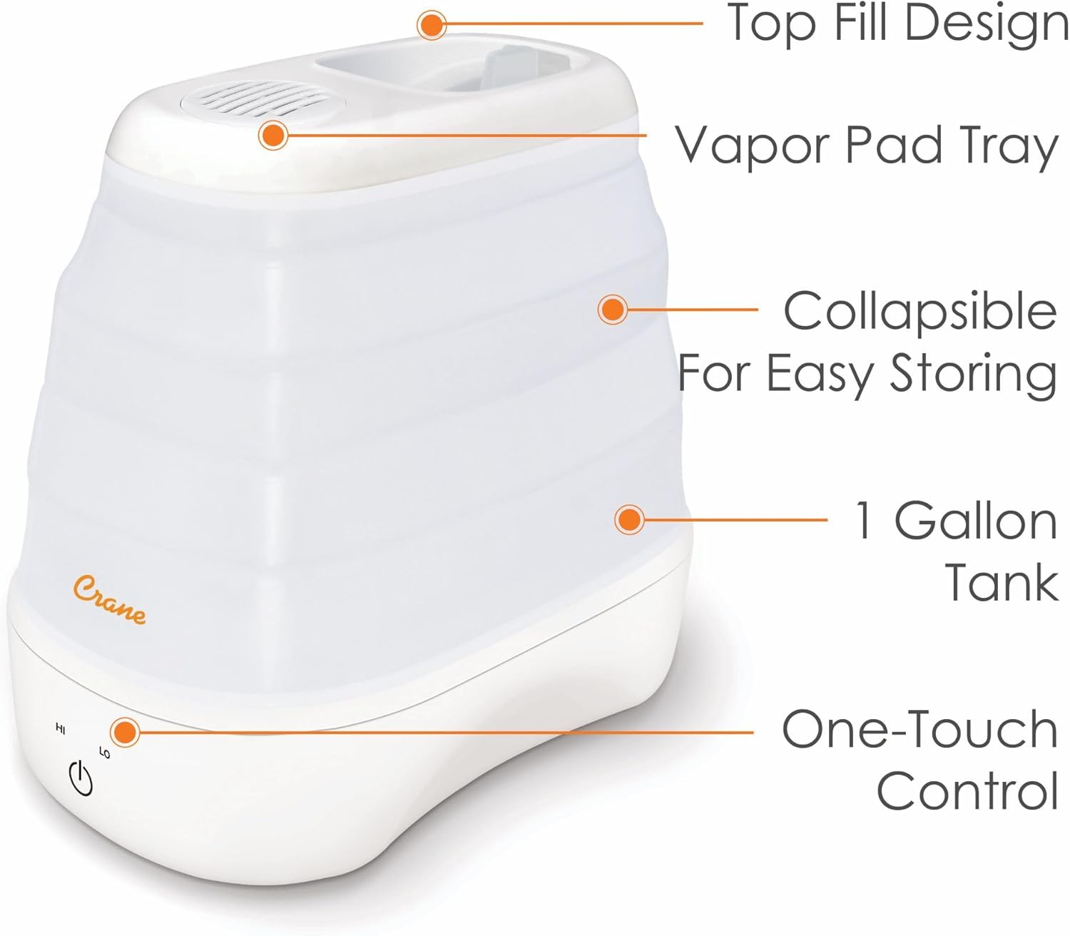 1 Gal. Warm Mist Collapsible Humidifier, White, Top Fill, for Medium Rooms Up to 500 sq. ft.