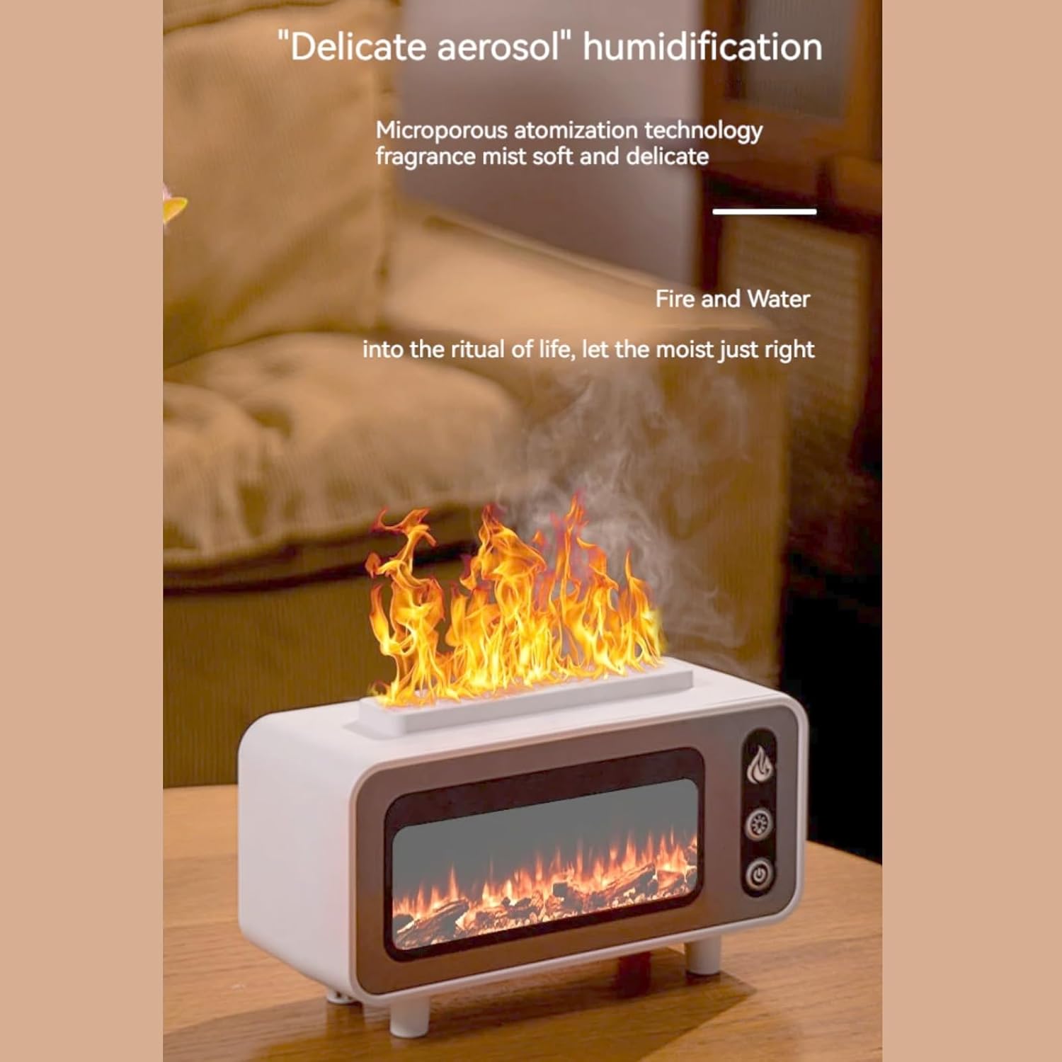 Flame Aroma Diffuser,Fireplace Humidifier,Colorful Flame Night Light,Nano Spray Silent Humidification Water Shortage Protection Cool Mist Humidifiers for Baby Bedroom Office,Black