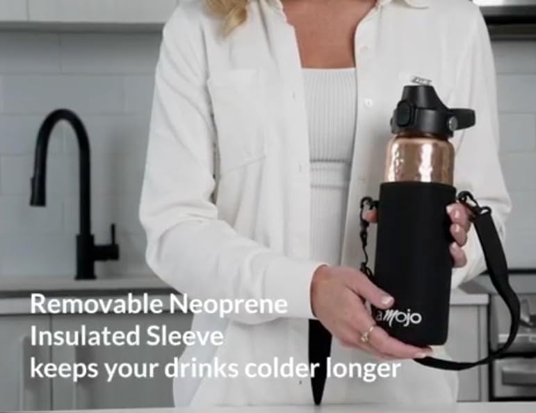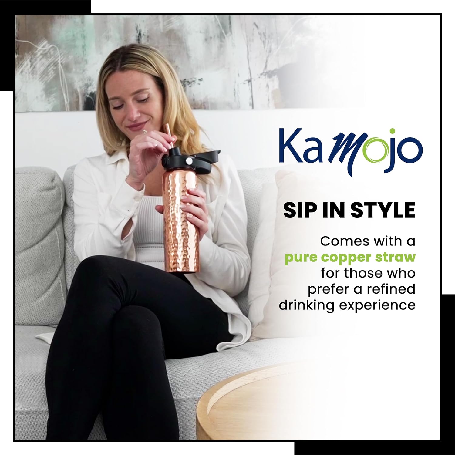 Copper Water Bottle for Drinking - Hammered 100% Pure Copper Tumbler with Leak Proof Lid, Removable Insulating Sleeve & Straw - Handcrafted Ayurvedic Cup for Water 32 fl oz