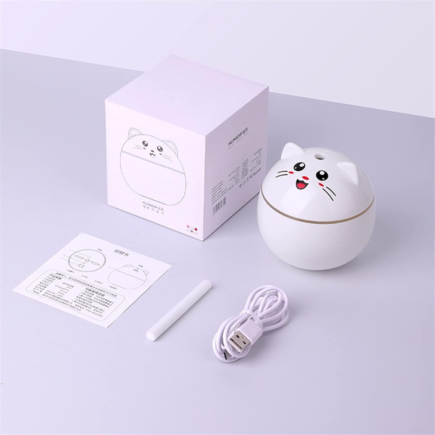 HASMI Humidifiers for Bedroom 300ml Air Humidifier USB Lamps Mini for Home Ultrasonic Car Mist Maker with Colorful Night Cat Office Air Purifier Diffuser Humidifier for Home (Color : White)