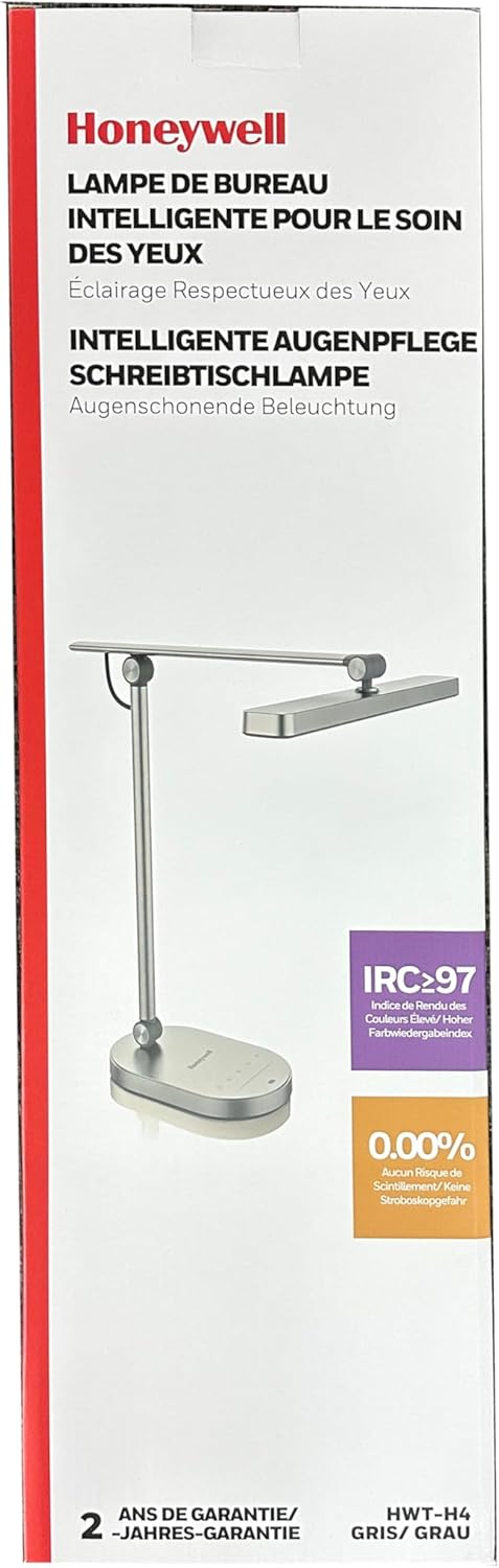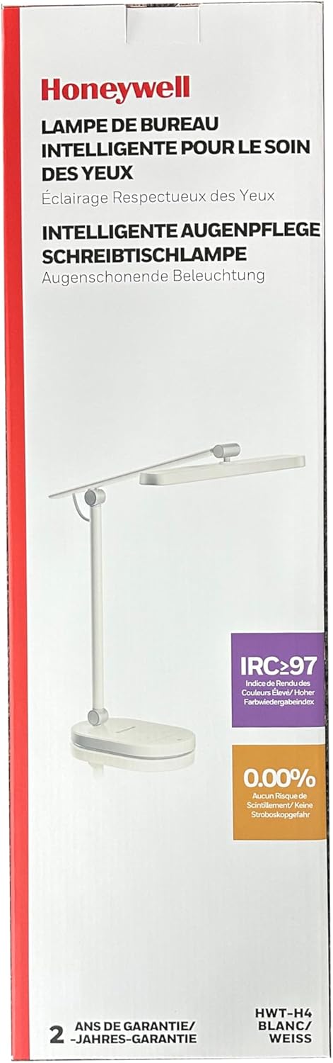 Honeywell Desk Lamp for Home Office, H9 Sunturalux™ Eye-Caring LED Desk Light, 1000LM Dimmable Desk Lamp with Timer and Auto-Sensing, Adjustable Desk Reading Light or Study, Cumputer, Architect