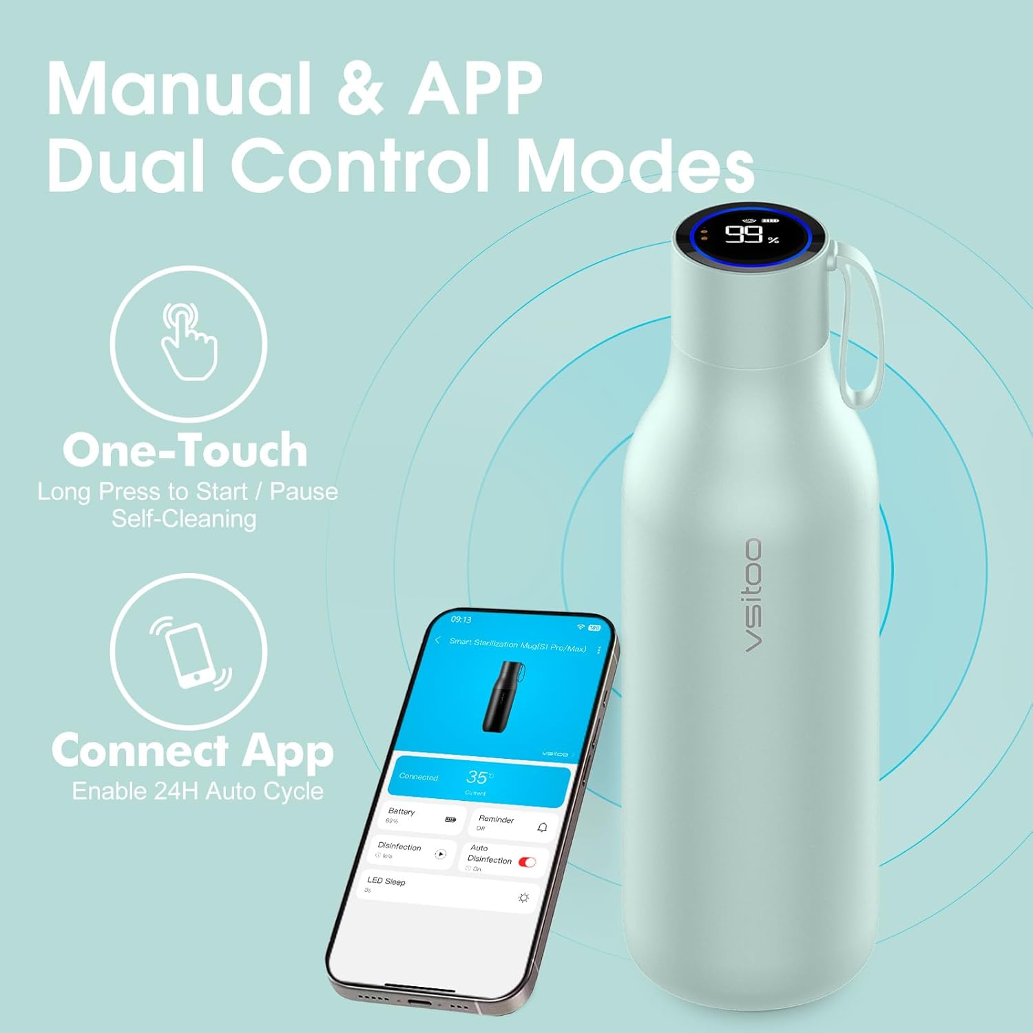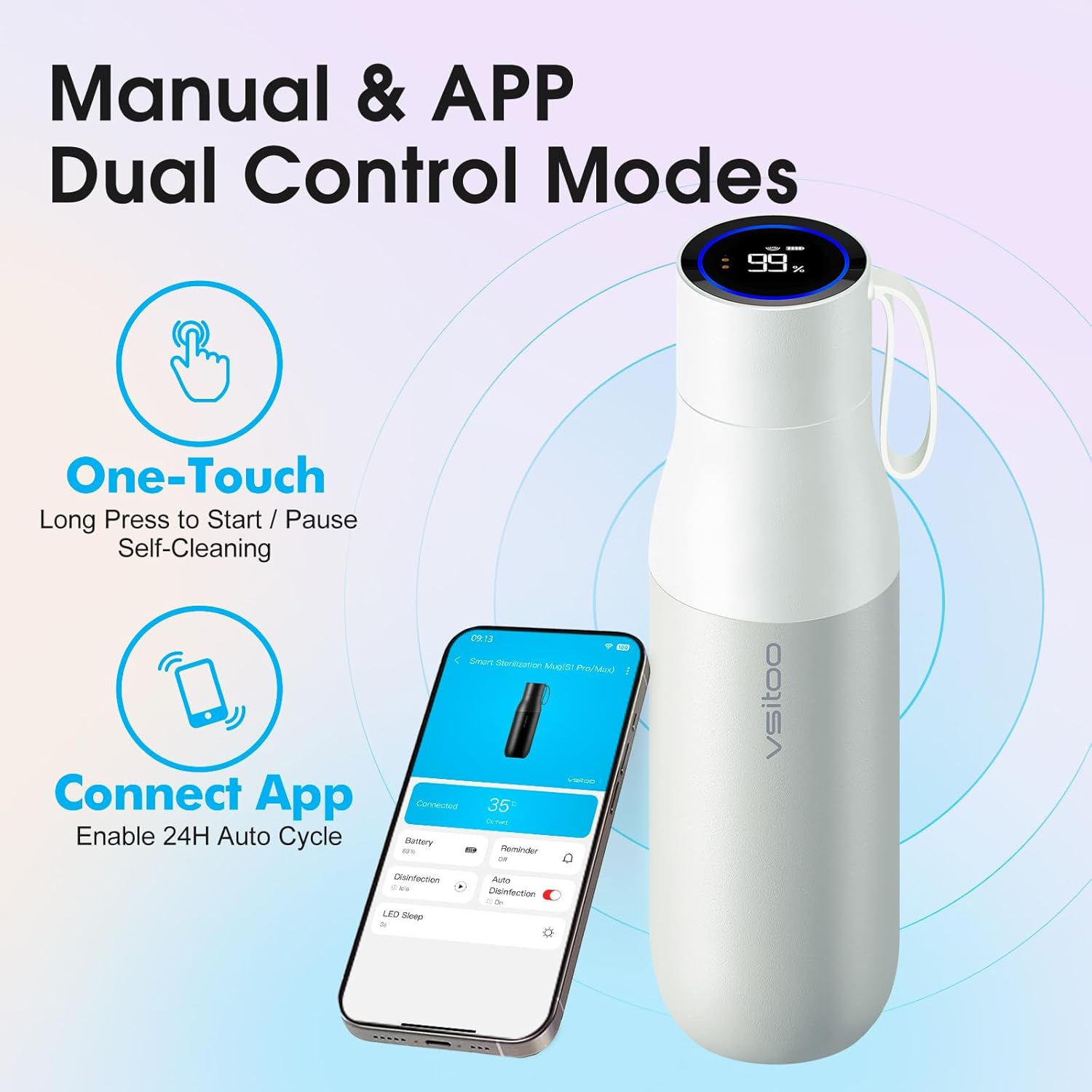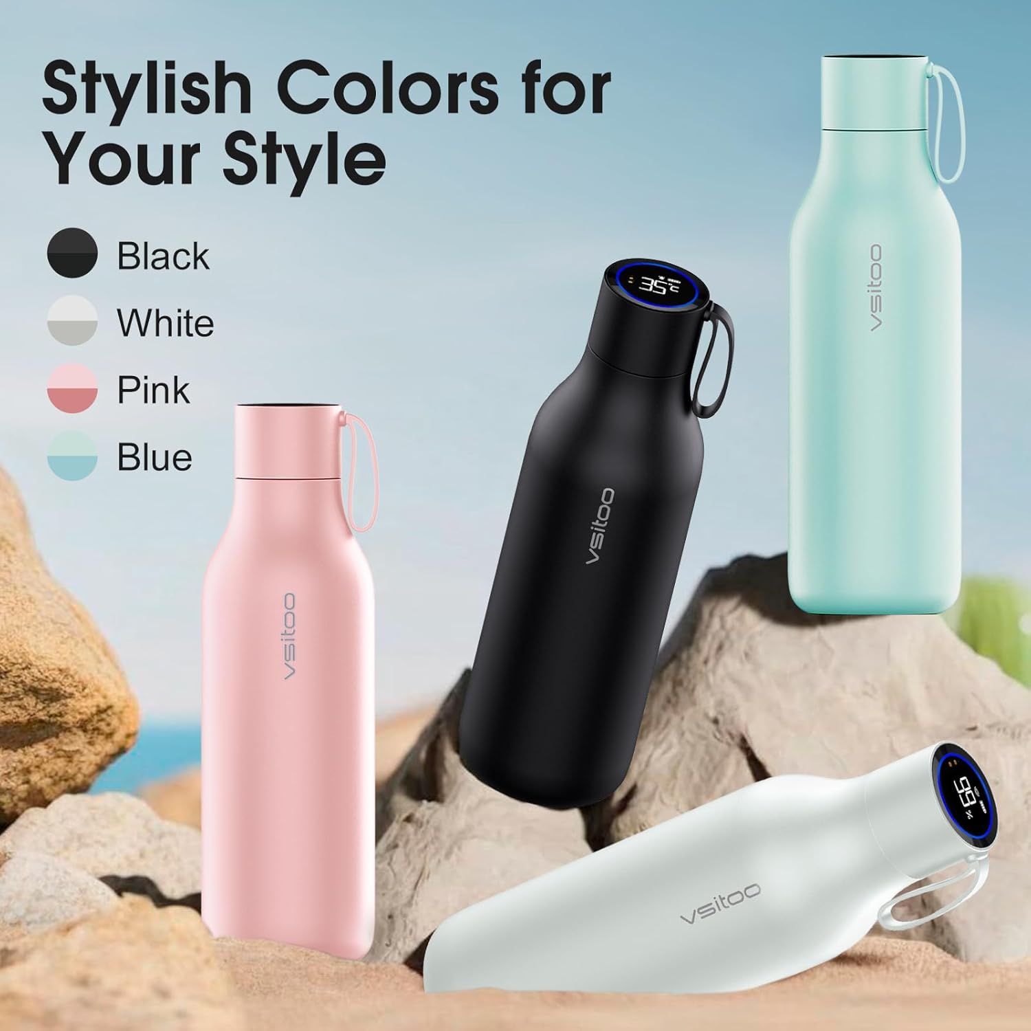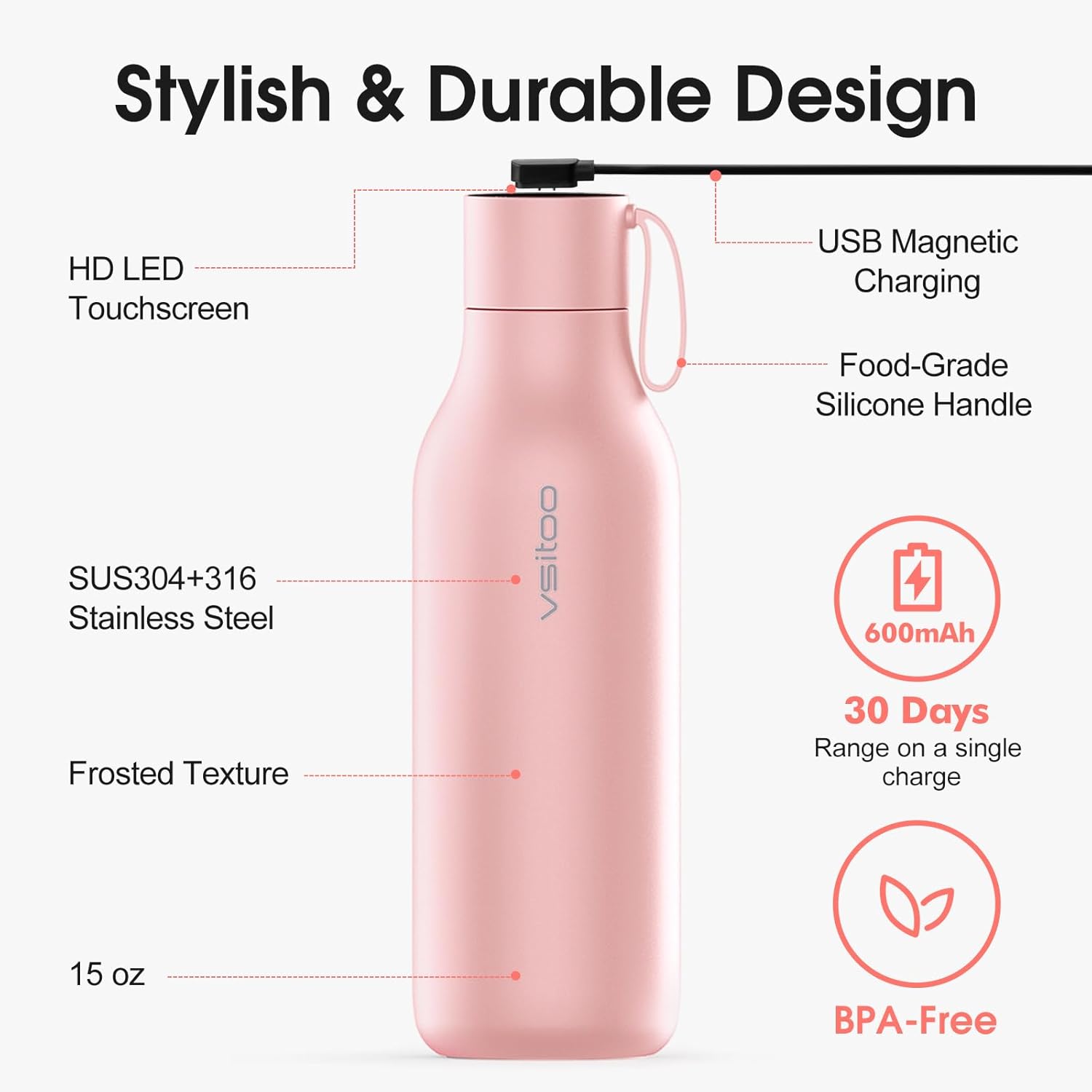 VSITOO Self-Cleaning Smart Water Bottle (pink, 15 Ounce)