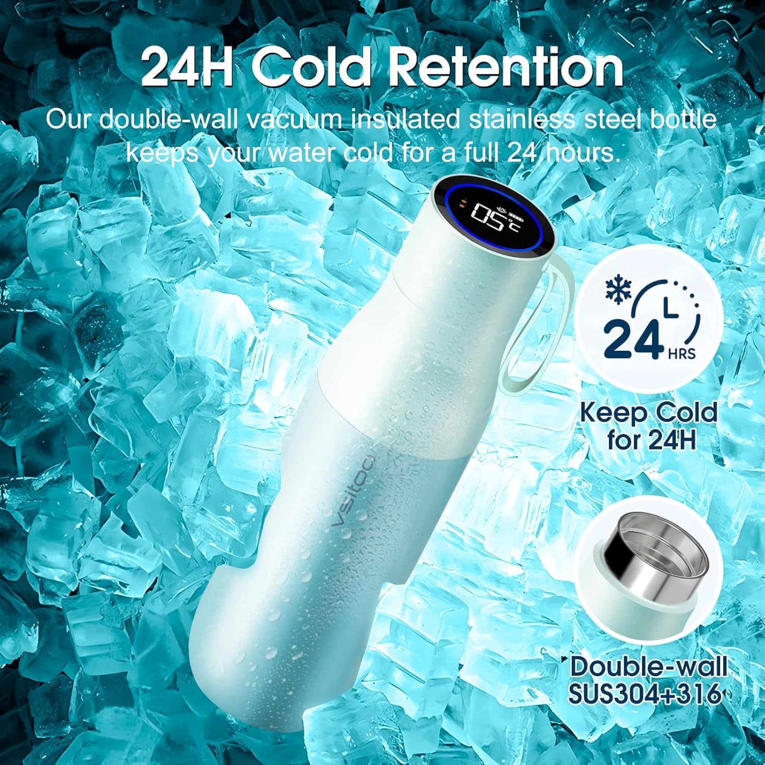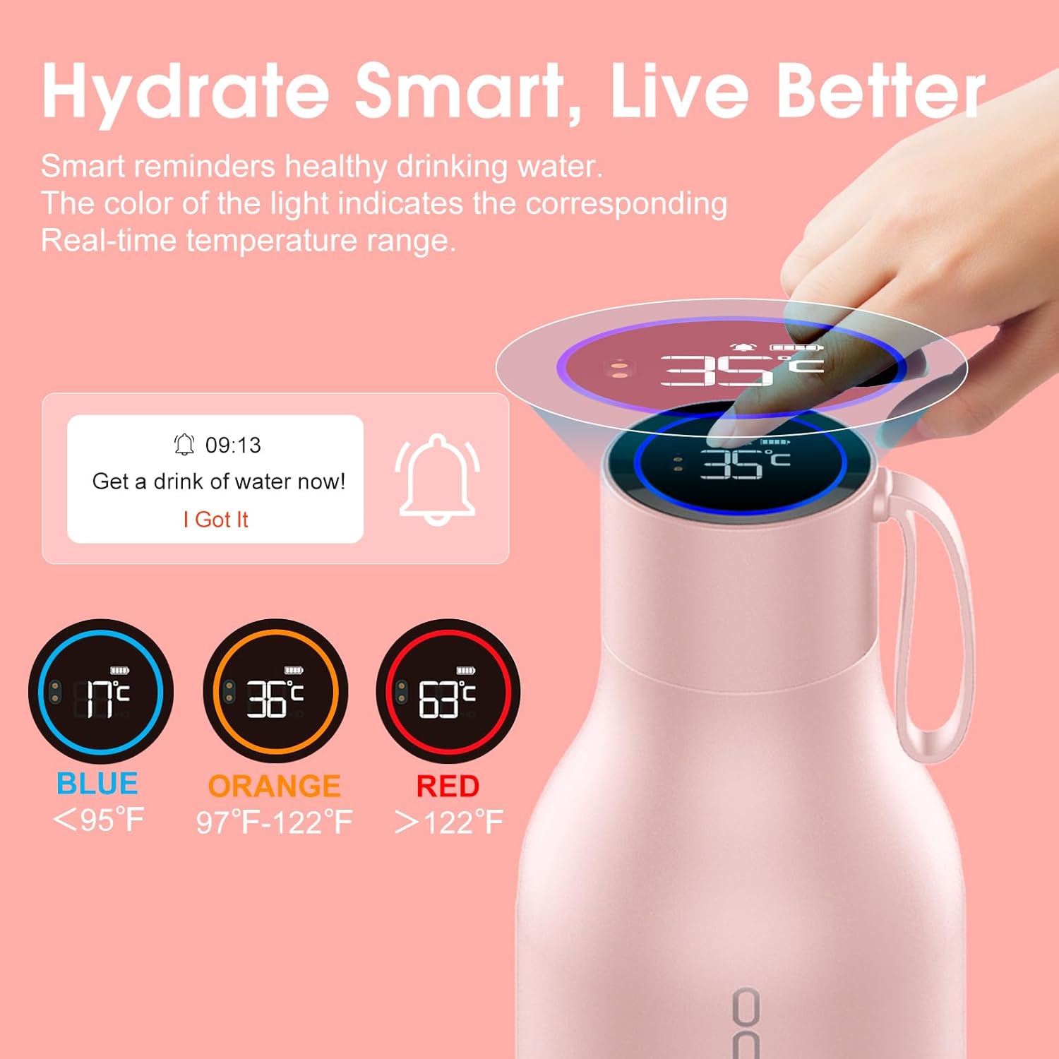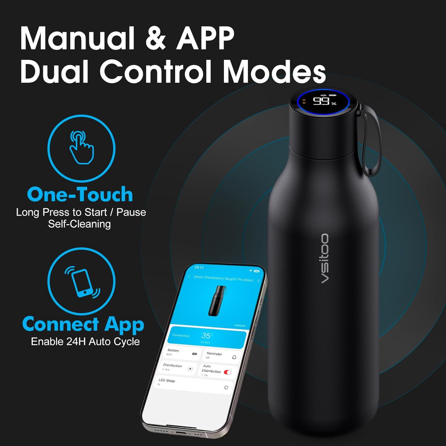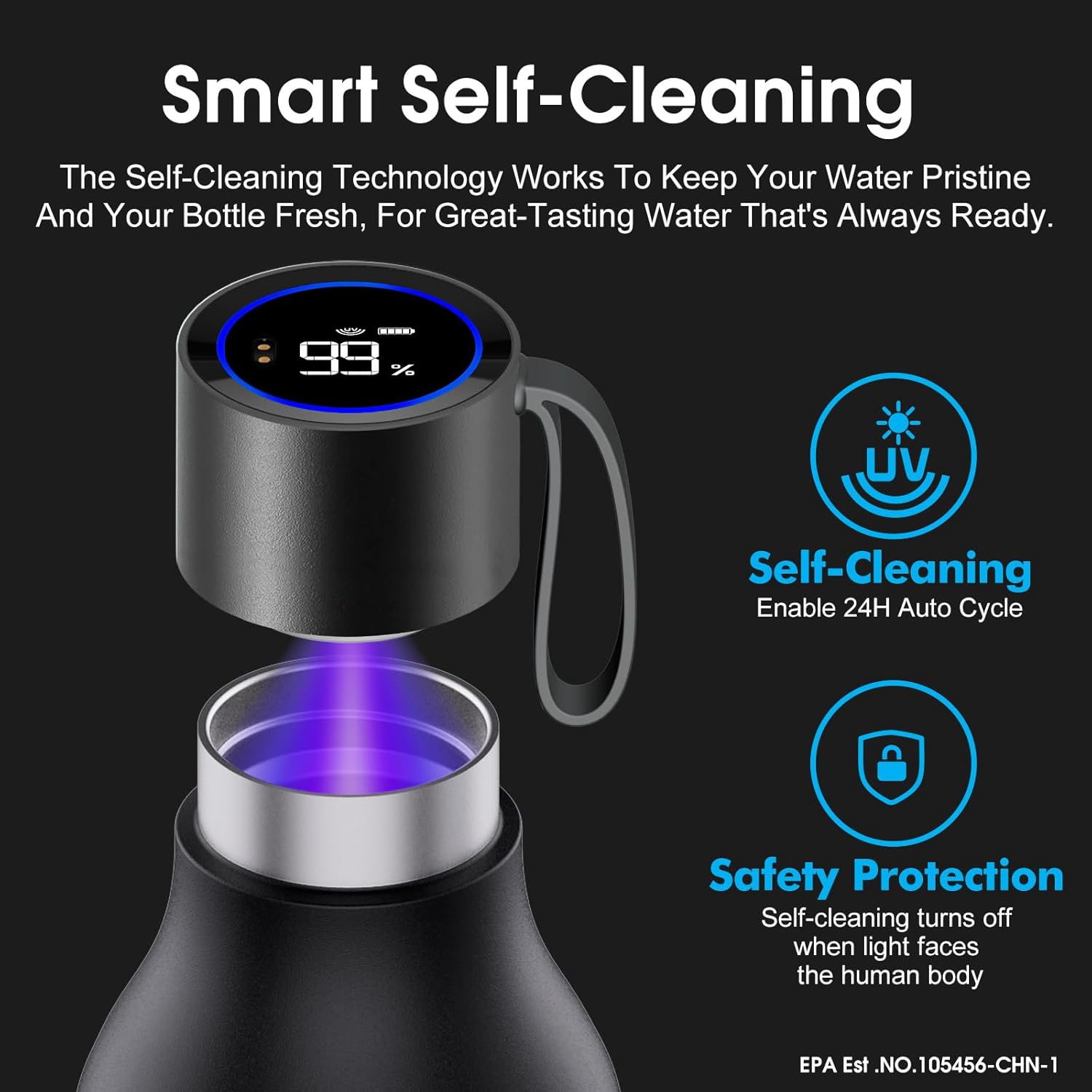 VSITOO Self-Cleaning Smart Water Bottle (pink, 15 Ounce)