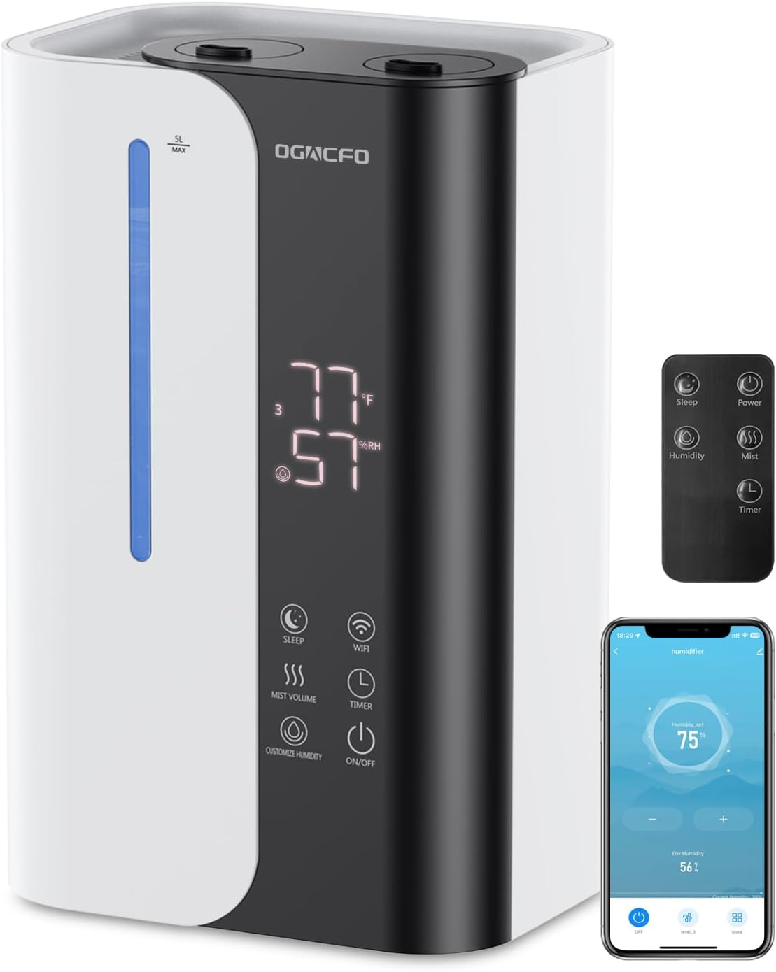 Cool Mist Humidifiers for Bedroom and Plants & Baby, Top Fill 5L Large Room Smart Humidifier for Home Nursery, 28 dB Quiet 50H Runtime Bedroom humidifier with Essential Oils