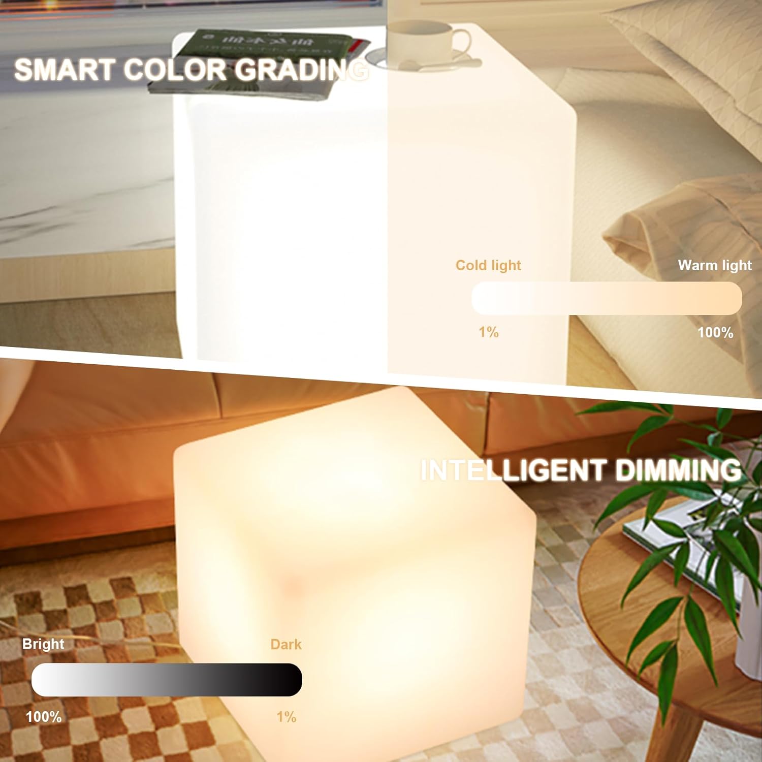Cube Smart End Table Floor Lamp, Multi-Function Colorful Lamp with Remote Control, Load-Bearing Capacity 660LB for Living Room Coffee Table, Bedroom Floor Lamp Plug-in Model 13.8x13.8in