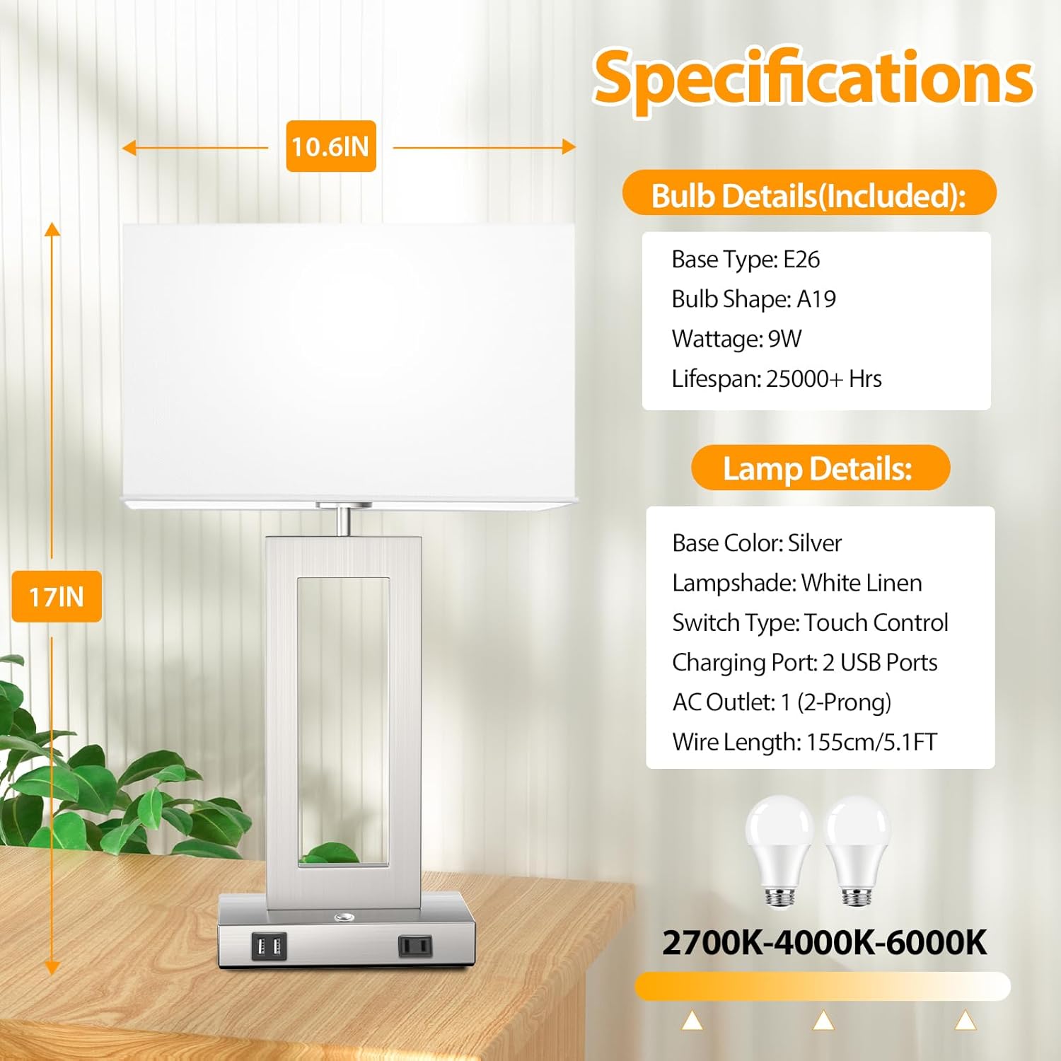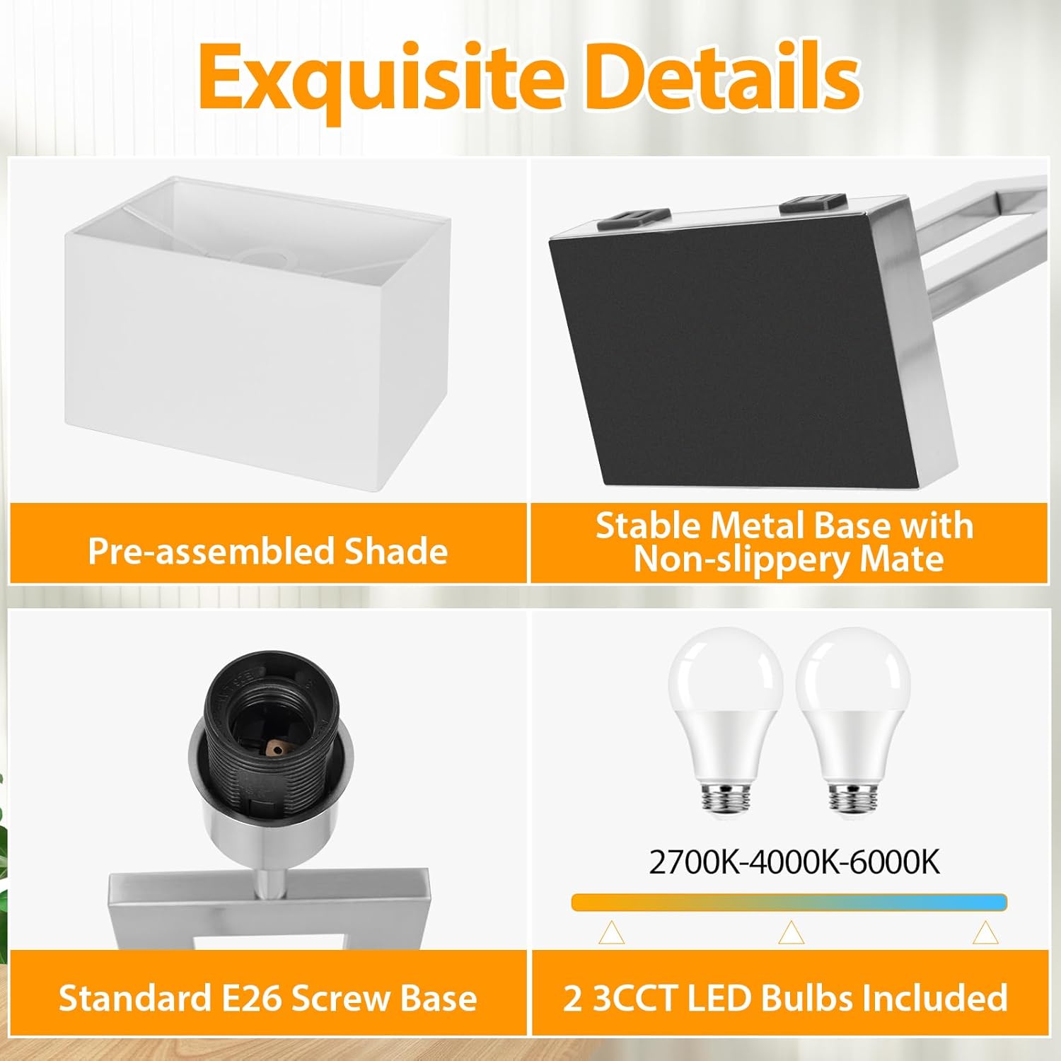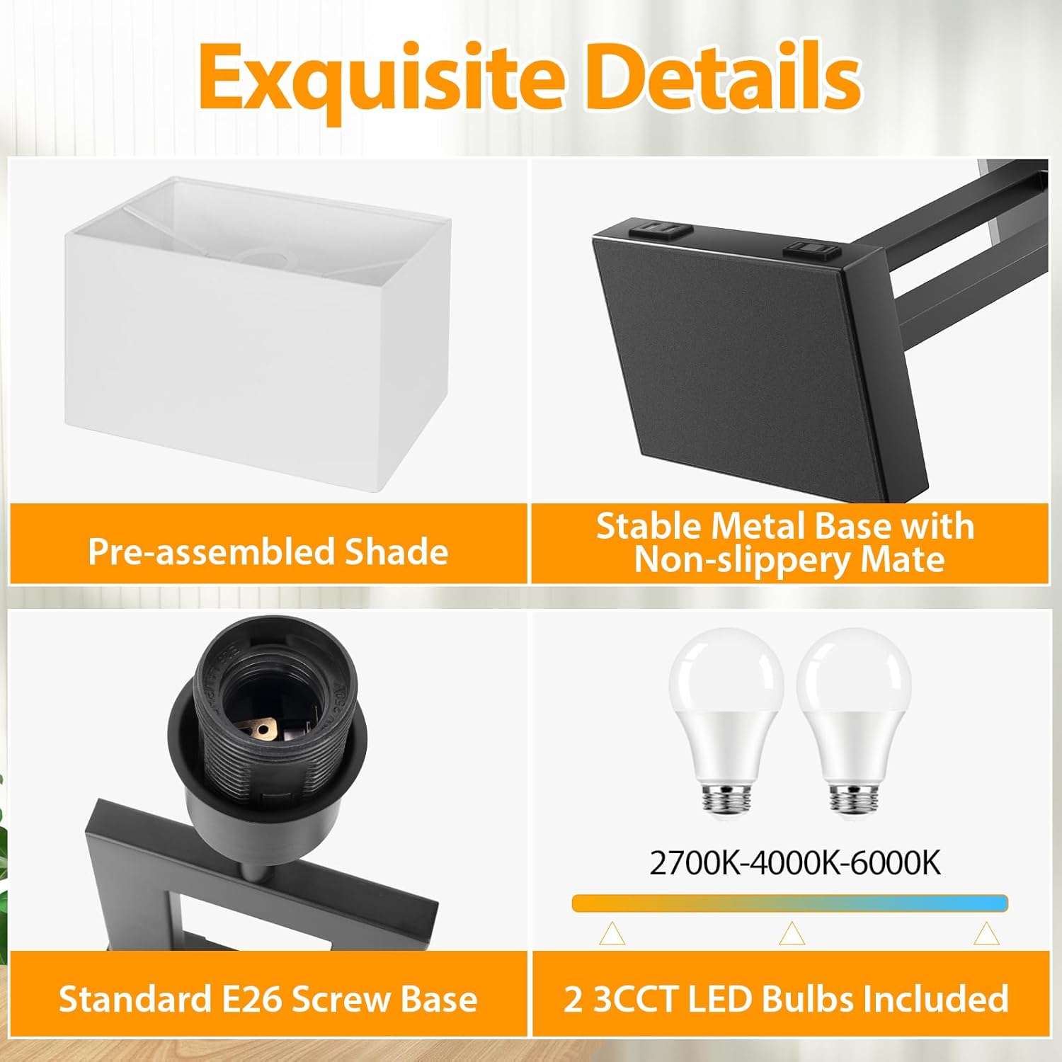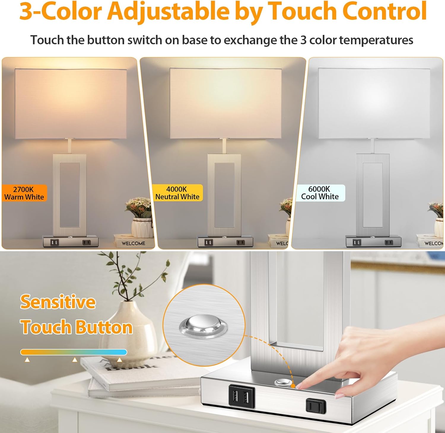 γπΌπππππ ππ 3 πͺππππ π»πππππππππππ π°π 1γWe integrated 3 color temperatures into one table lamp to provide outstanding conveniences to our customers. Just slightly touch the button to set your ideal lighting performance. 2700K warm white recommends for reading sleeping, 4000K neutral white ideal for working studying, 6000K cool white suits for daily use at home or office. This smart design makes our modern touch table lamps rather versatile for any corner like bedroom living room guest room