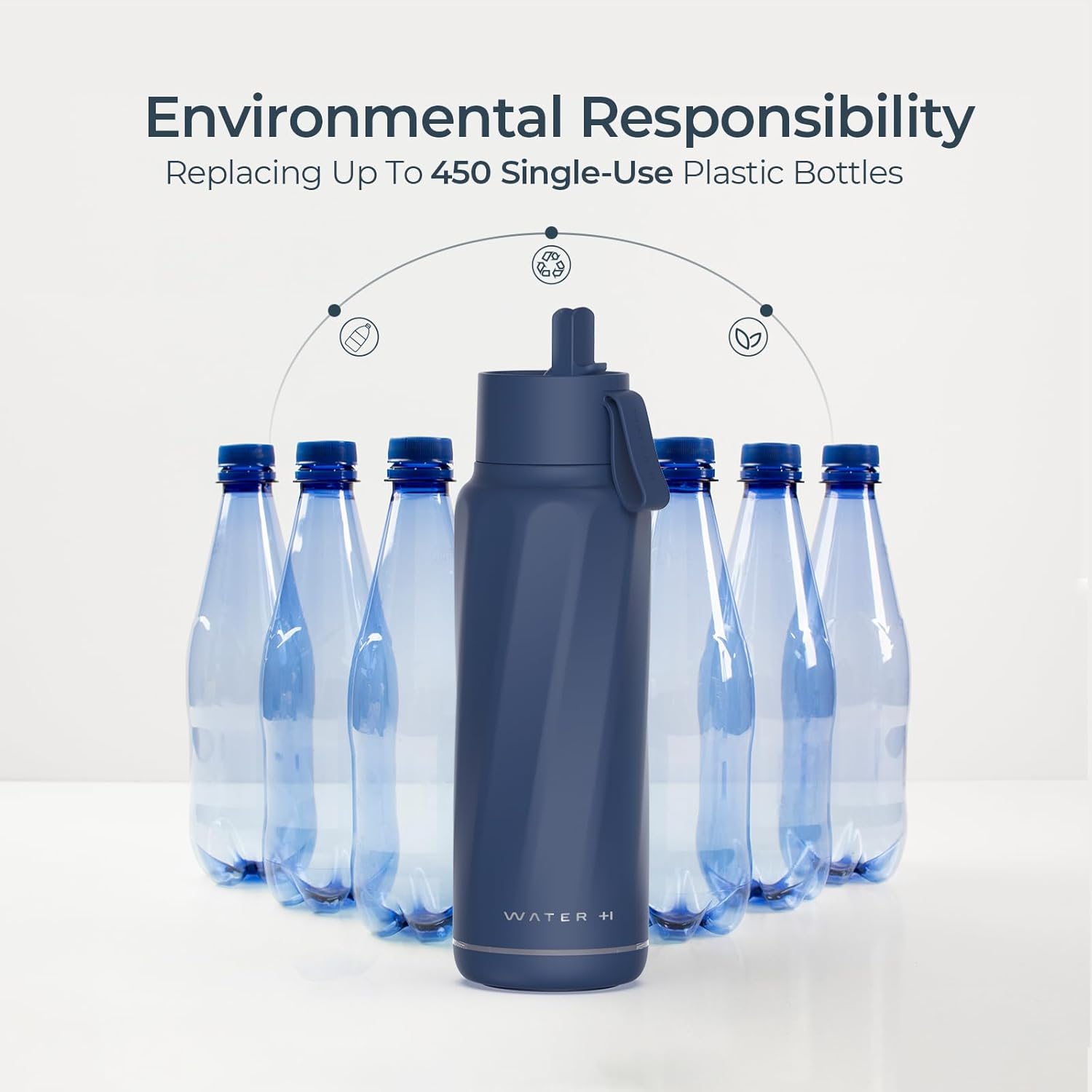 WATERH Vita Smart Water Bottle with Reminder to Drink Water, BPA-Free Vacuum Insulated Water Bottles with Straw, Bluetooth Intake Water Tracking Bottle, Ideal for Gift (18 oz)