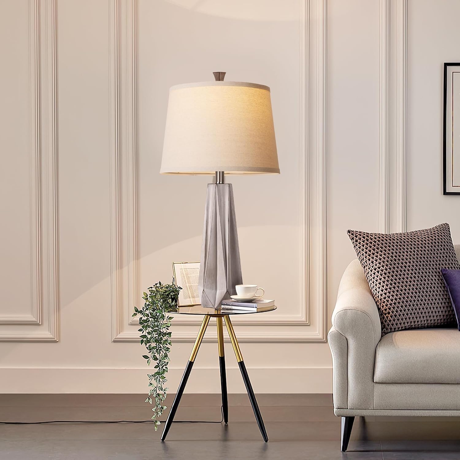 27" Resin Table Lamp Set of 2, 3 Color Temperatures, with Linen Shade, Nightstand Bedroom Office Decor, 2 Bulbs Included for Restaurant/Bedroom/Bar/Camping/Outdoor(Light Wood Grain)