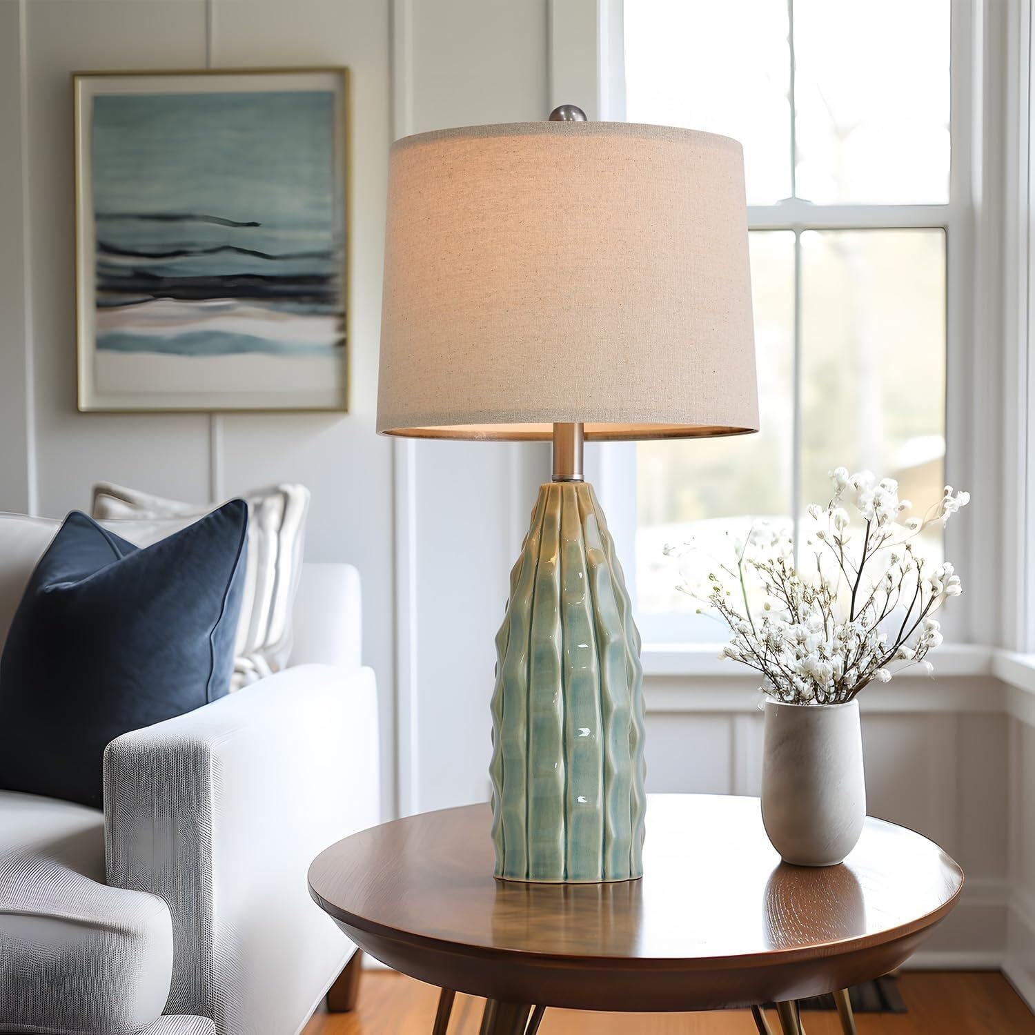 23.75" Modern Ceramic Table Lamp Set of Two with Linen Shades for Bedroom, Office and Living Room Decor Suitable for bedrooms, Living Rooms, Offices, Book(23.75"-Green-2Pack)