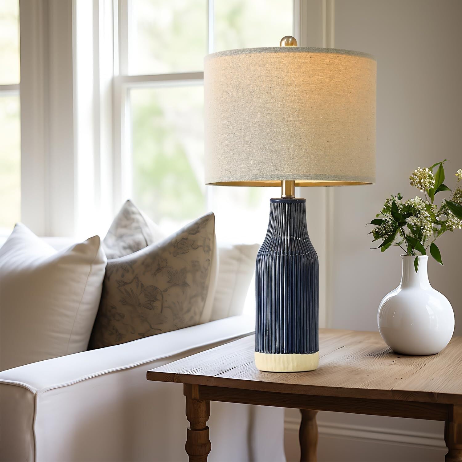 23.75 Inch Modern Ceramic Table Lamp 2 Pack for Living Room, Nightstand, Bedroom Lighting, Gift Suitable for bedrooms, Living Rooms, Offices, Book(Beige)