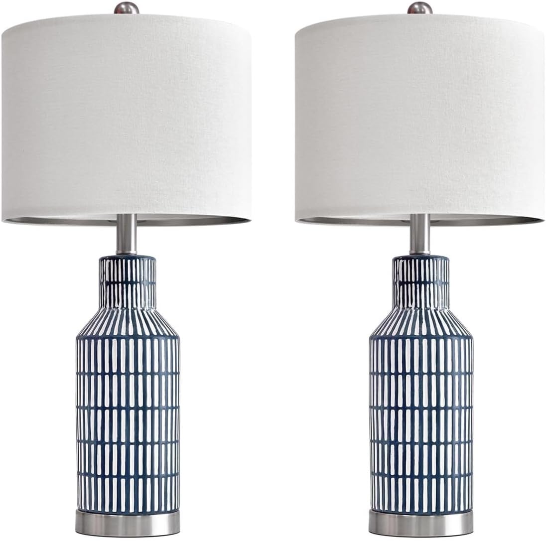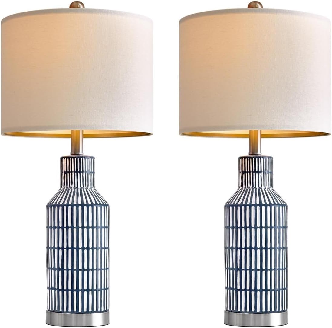 25 Inch Modern Ceramic Table Lamp with Linen Shade for Living Room Bedroom Farmhouse Nightstand Lamp Suitable for bedrooms, Living Rooms, Offices, Book(Washed White-1Pack)