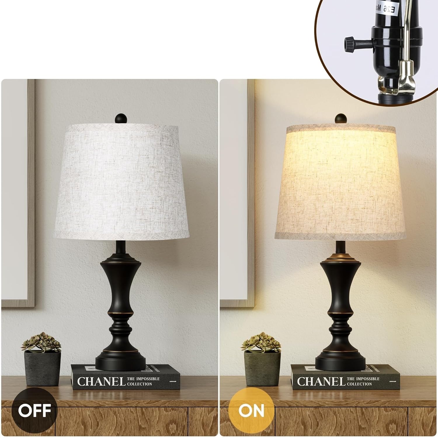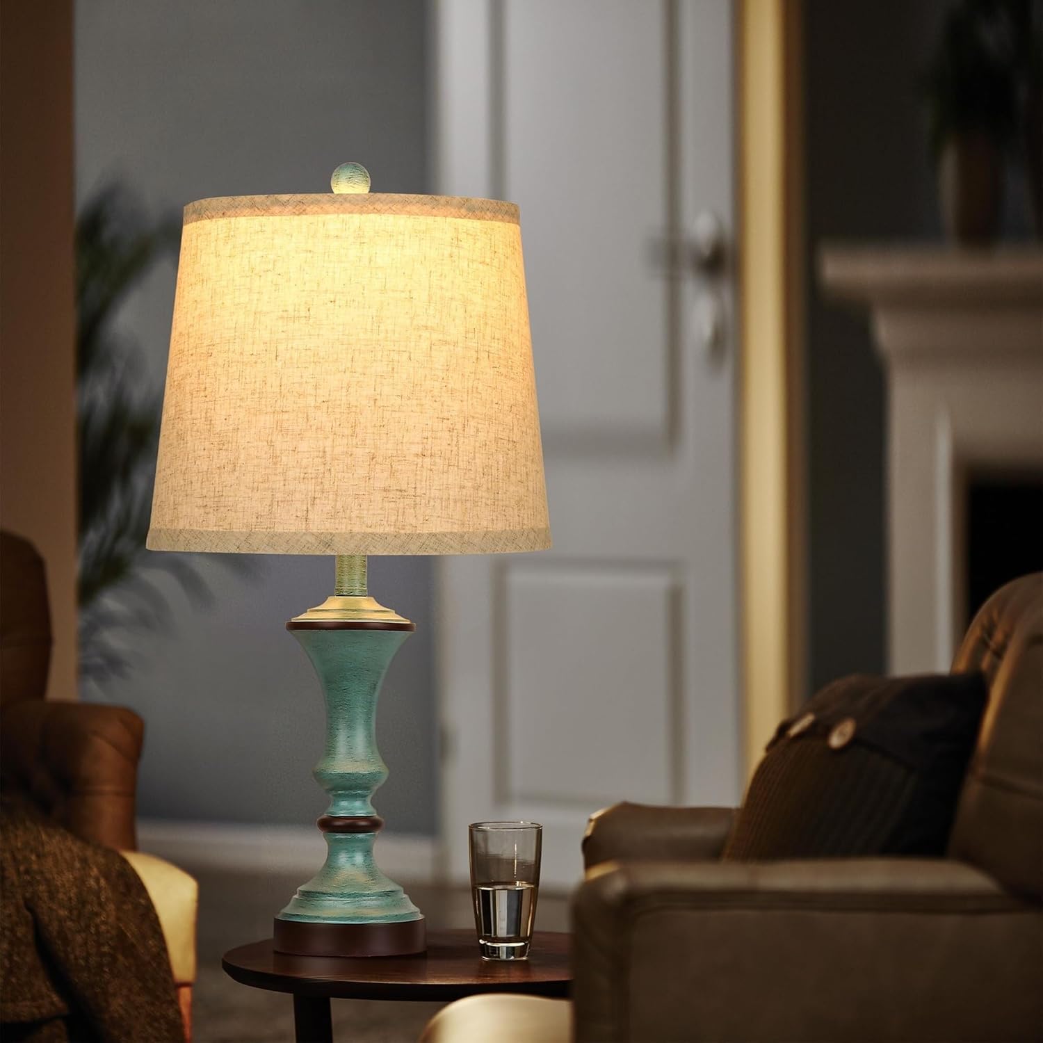 22-inch Vintage Table Lamp Set of 2, Linen Shade, Resin Base, Suitable for Bedroom Bedside Living Room Lamp Suitable for bedrooms, Living Rooms, Offices, Book(Retro Brown)