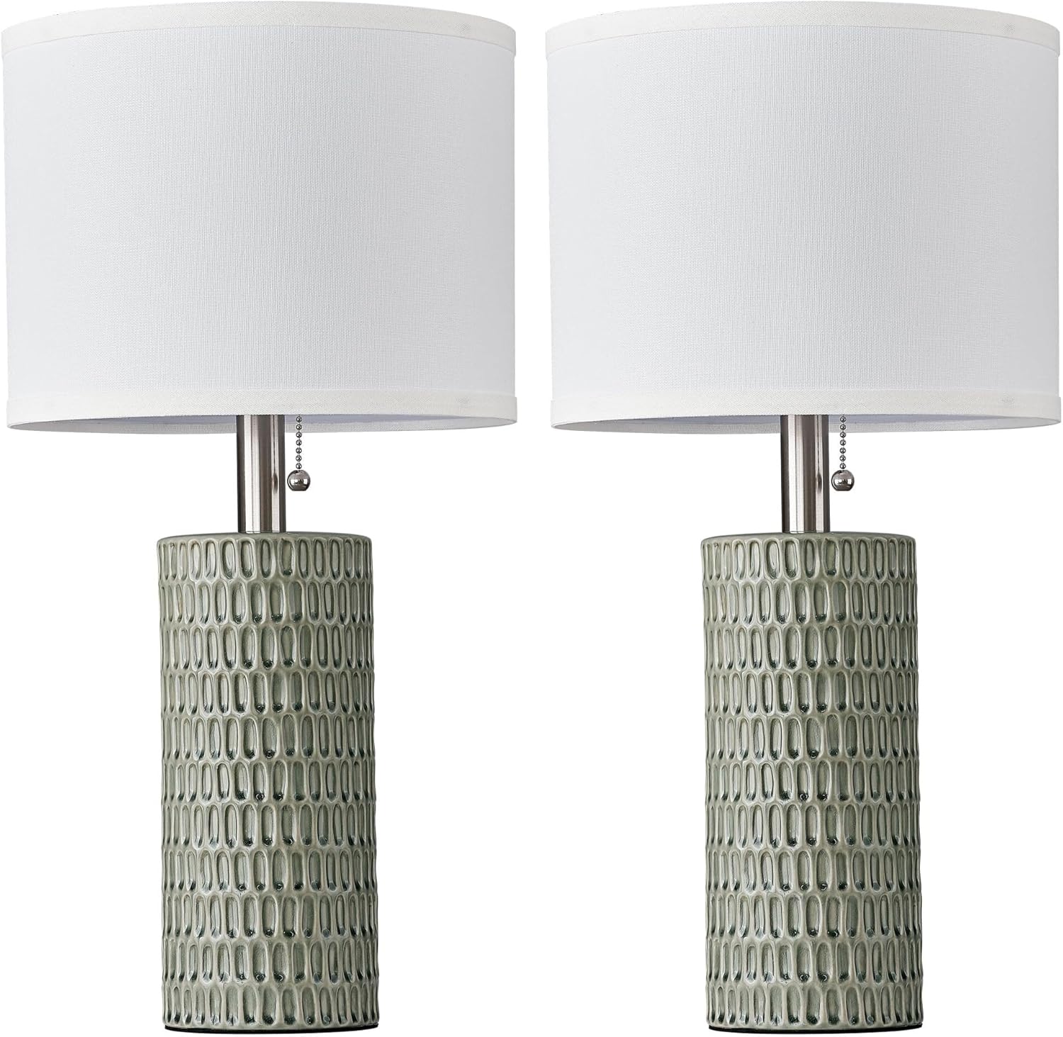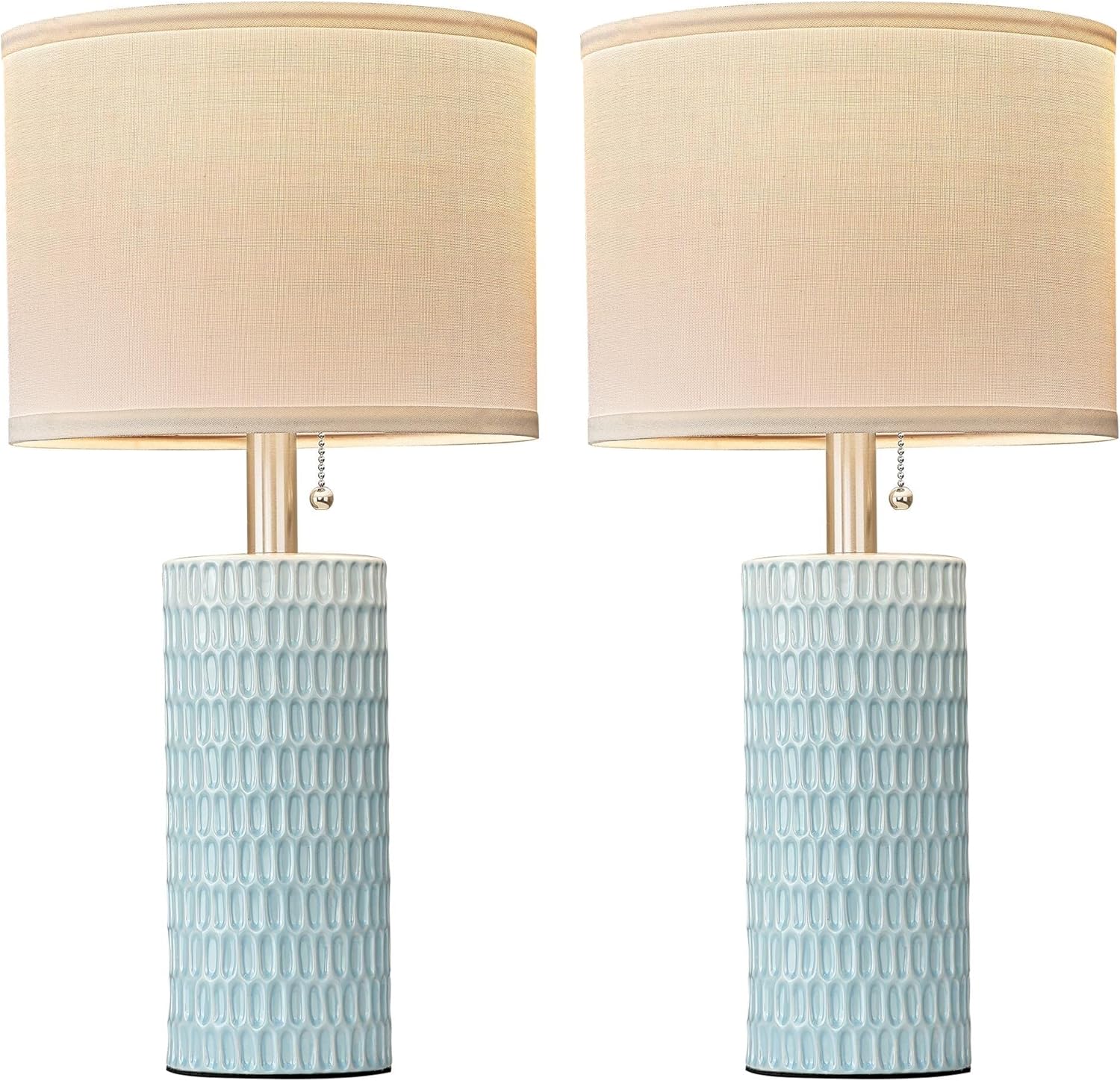 20 Inch Modern Ceramic Table Lamp 2 Pack with White Fabric Shade for Bedroom, Living Room, Nightstand Lamp Suitable for bedrooms, Living Rooms, Offices, Book(20" Dark Blue-2Pack)