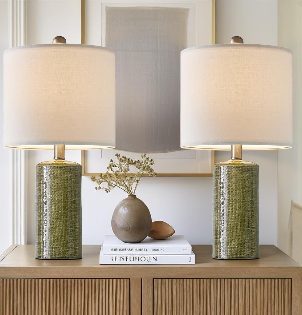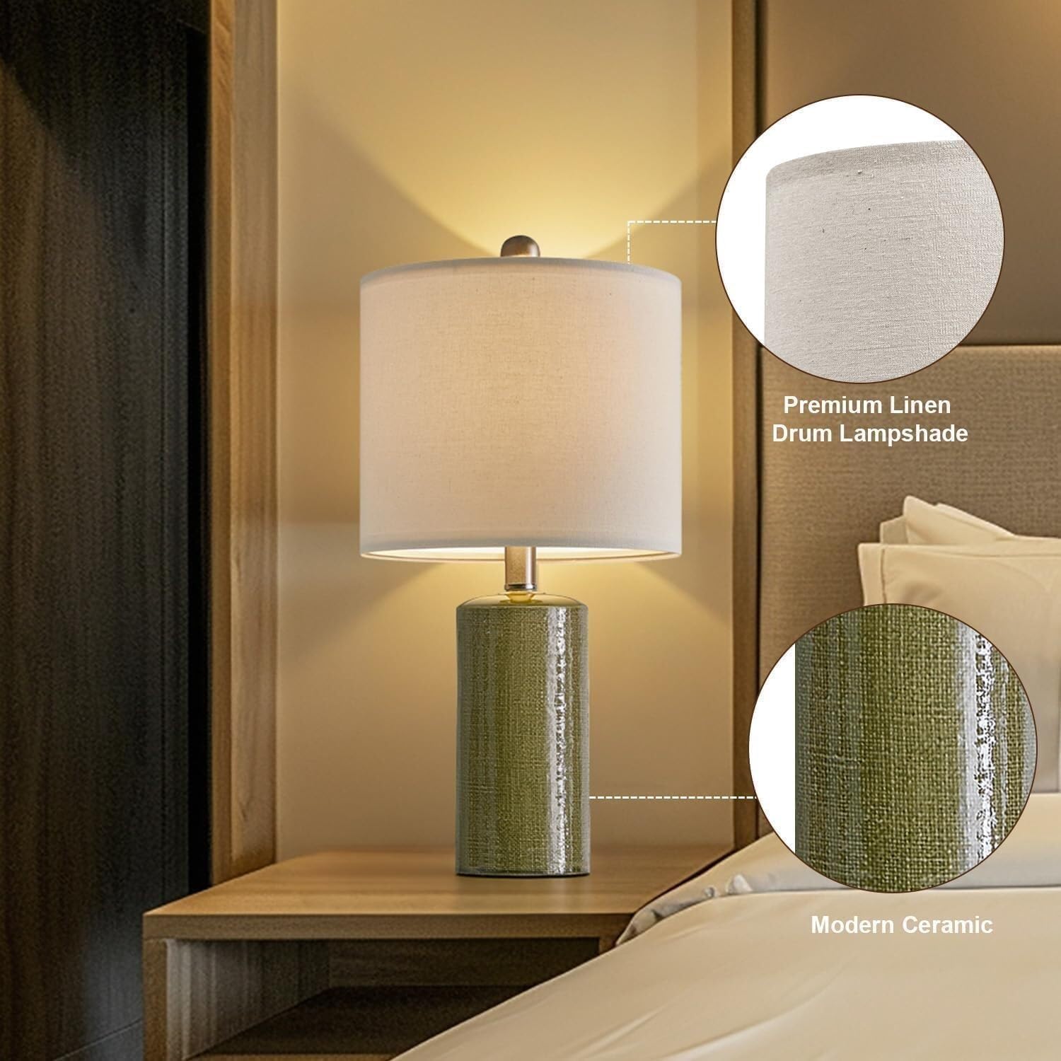 20.25 Inch Modern Minimalist Ceramic Table Lamp with Linen Lampshade for Living Room Bedroom Bedside Lamp Suitable for bedrooms, Living Rooms, Offices, Book(Gray)