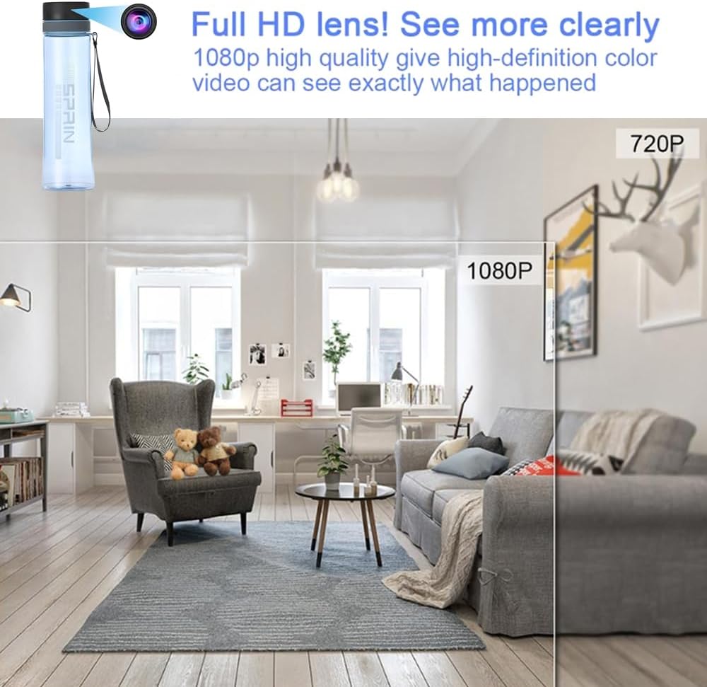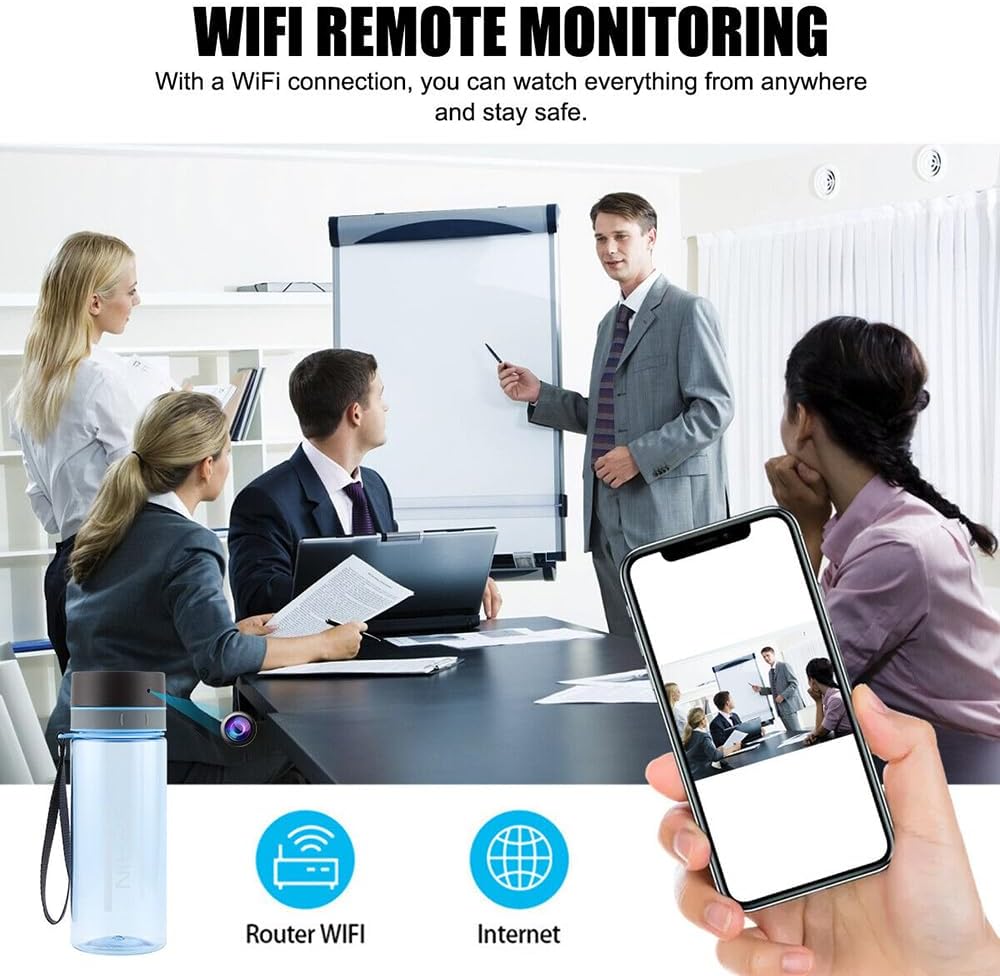 WiFi Water Bottle with 1080P Camera, 90° Wide Angle, 128GB Expandable Memory, Smart Tracking for Fitness & Home Security, 1000mAh Battery (Light gray)